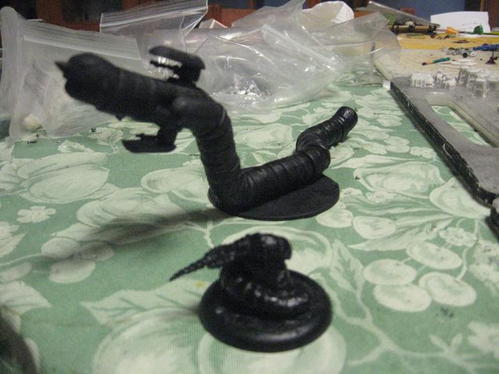 I've started on mine, but I need to buy in silicon and resin supplies to finish them.  I used the front of a well known medium sized tunneler mated to some plastic tube and detailed with Green Stuff as the engine, and same diameter tube to make the cars.  I'll post pics when I'm ready to start painting.