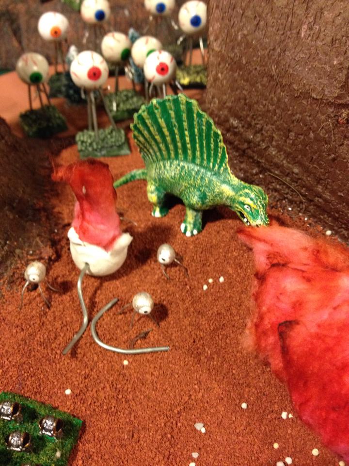 The Eye Horror army was ment to be a scratch built army based on a clay ball with wire armature. This is a cheap way to make an army that anyone capable of rolling a ball out of clay can do. At it's worst (my skill level) it looks uniform but a bit cheap. If you have the time and money to purchase models, any War of the Worlds Martian Tripods would fit the build and look far better.