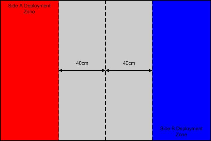 Once players have chosen their armies, the scenery has been laid out and objectives have been placed, the areas where the armies can be set up (or rather deployed) must be decided.