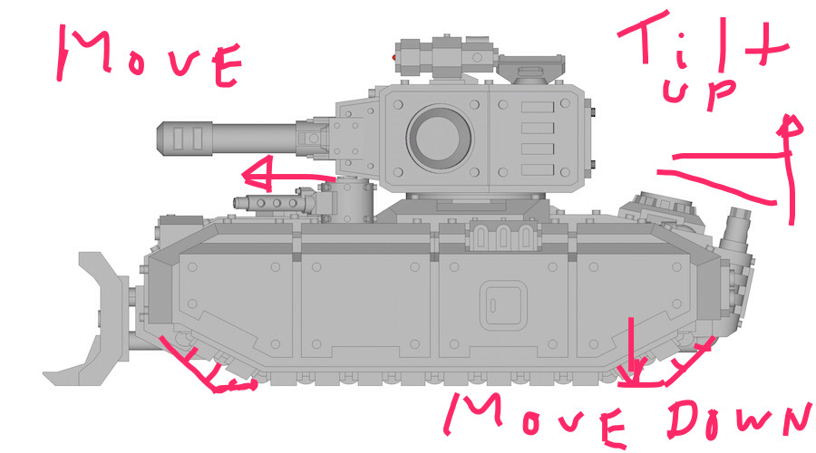 Missile pod is removable, similar to the design of the Tribune's turret (see crowdfunder). The missile pod can be replaced for a stormbolter like turret, machine gun turret, smoke launcher or targeting device.
