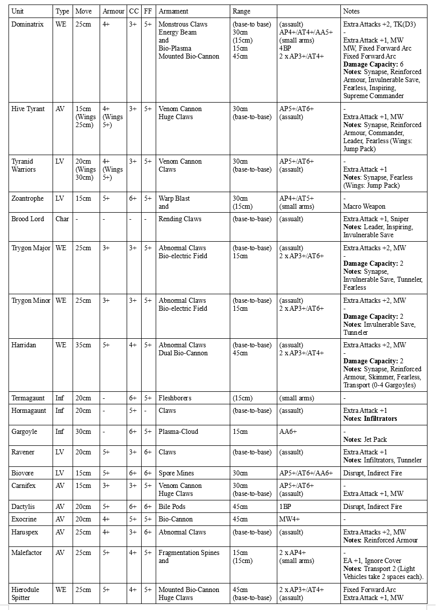 Can't say I agree with that intention as I like the feel of lots of gaunts. Like waves of brood creatures being pushed forward by the hive mind. What I'm after is increasing the power of gaunts heavy swarms basically. I think my suggestion would make medium or large size swarms more attractive.