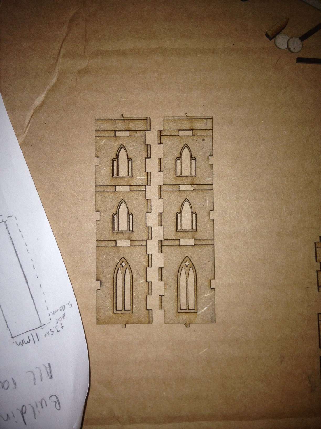 @spectra Ghost - Don't worry, the gaps in the corner would normally be scored in to allow the end user to snap them out or keep them in depending on whether it would be used for a corner piece or if they didn't want to attach buttresses, but I only cut one straight piece so had to use the same one moved about in the photos! I think I have a solution for the corner problem, it also lends itself to even further modularity by having an option for corner buttresses and allows door segments and other specialty segments to be placed right next to the corners, though it'll involve a little more modelling skill on the part of the person putting the kit together. I'll try it out this weekend coming and see what happens.