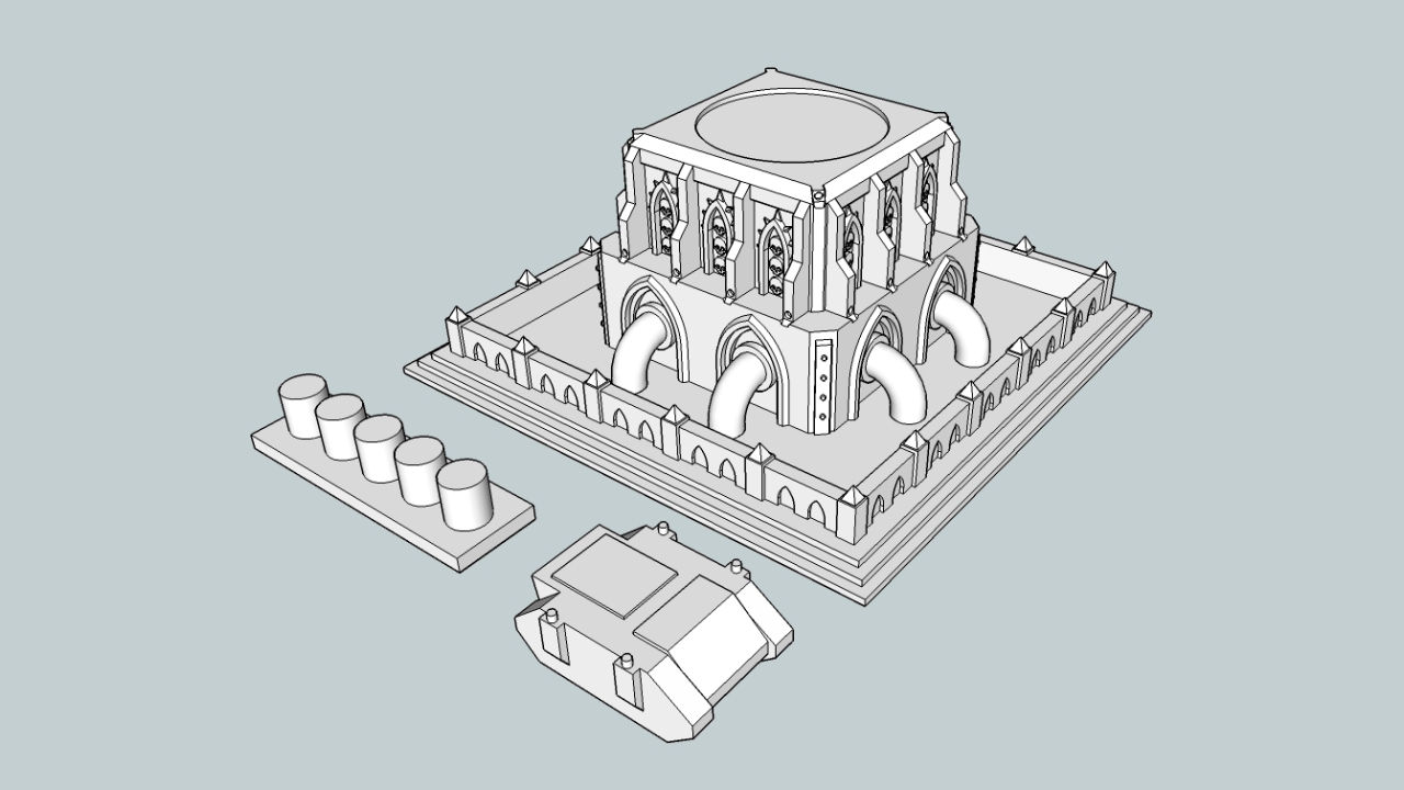 @Nitpick: I've been on a bit of a grimdark design kick recently, but I do have plans for more industrial or high tech looking stuff. Unfortunately it's not quite at the stage where I'm happy with it and can show it off. I want to do some structures like the kind found in foundries or refineries, but I'm grappling with the best way to represent such spindly, open and detailed structures while still making it castable. Gothic stuff is easier - just add more skulls!
