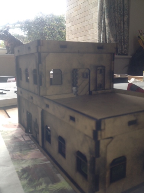 The buildings are removable. The building in the photo was made with a 10cm square base to test out if it could just plug in to the tile system effectively, which it does I think. It doesn't need to be glued in, and so if you leave one tile from either side of a board square off then the buildings can slot in and be removable. Also if you have a few spare tiles painted up, these could just be placed down unglued if you don't want a building in that particular place for a game, but I'll make larger 'blanking' tiles for this purpose too maybe. The buildings can also be based on an entirely separate base with attached pavement with rounded edges that simply gets placed on top of the board like normal scenery, a purchaser will be able to chose what they prefer. So far I think this actually looks better though as it creates another layer to the board and gives some relief from all the harsh right angles found everywhere else in the designs so far!
