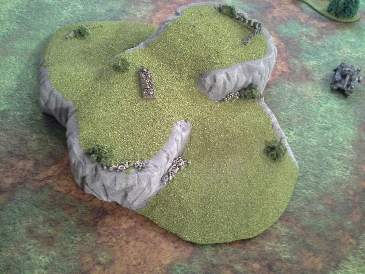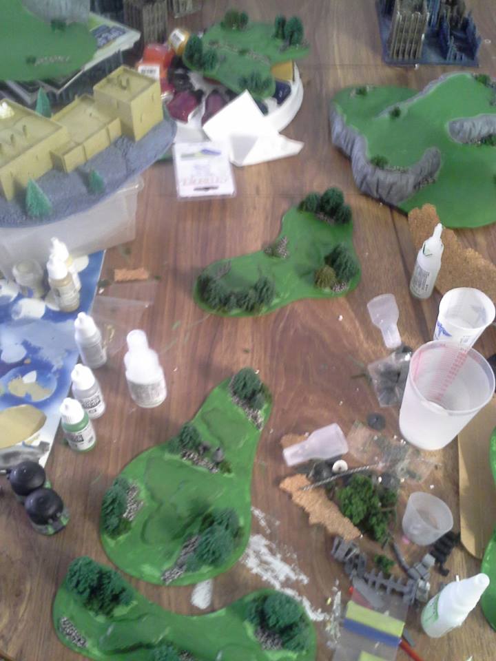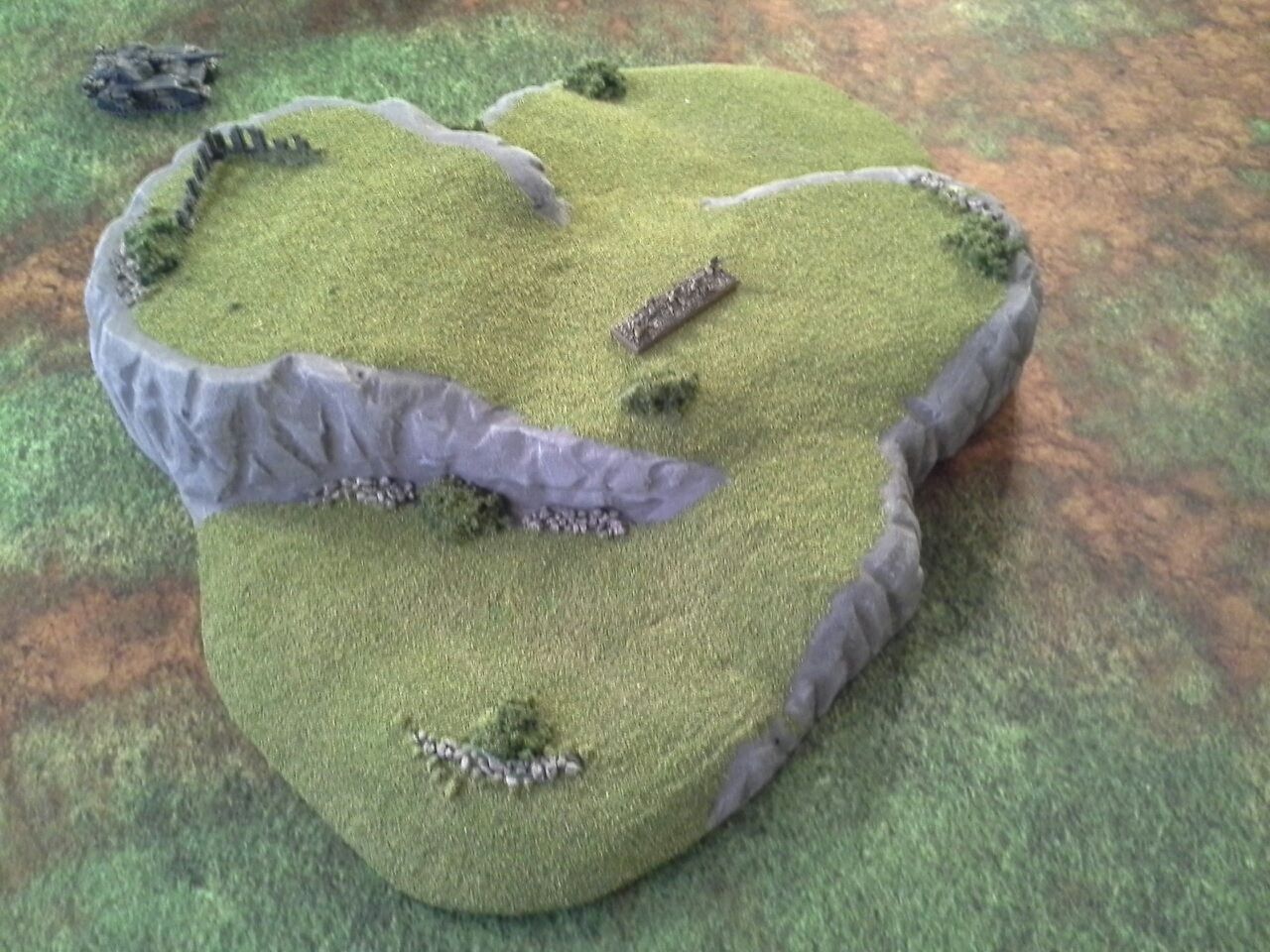 Ya that part of terrain has always been a pet pev of mine, I want to scream when I see ridged stuff. So I shaved off as much as I could with a knife and sand paper then what I did was cover the entire thing(cept bottem) with a polyfilla (stuff you use to fill in drywall holes) and then sand it down a bit to get rid of the bumps and bits. This also helps if you want to glue stuff to it like I did with the rocks ruins and bushs by allowing you to super glue it with out melting the foam. Just be careful when sanding too much cus if the foam shows threw then you might have a problems later.
