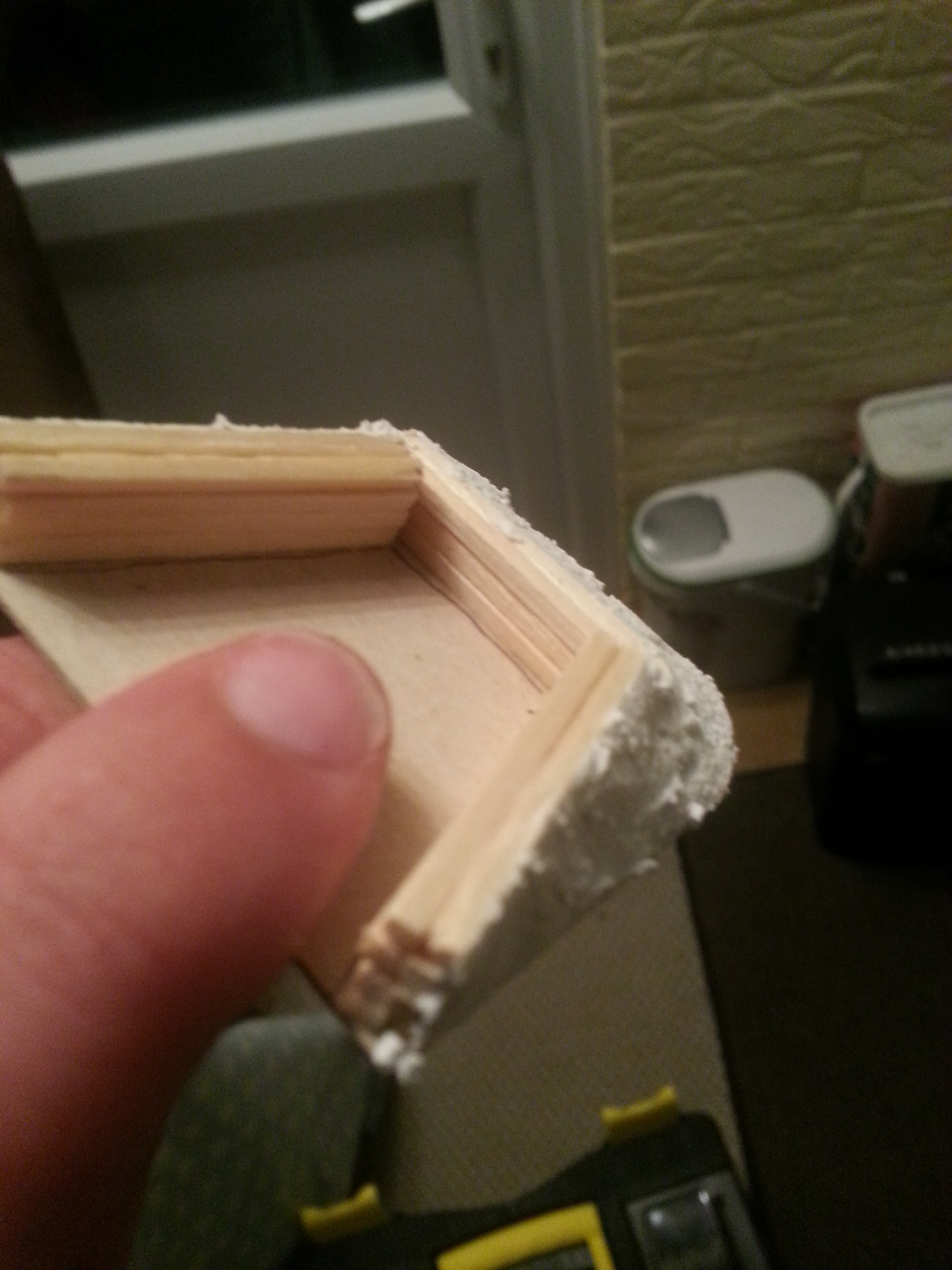 total items used: 4 boxes of matches, PVA, bits of cereal packaging and a pot of poly filler, roughly £3.20.