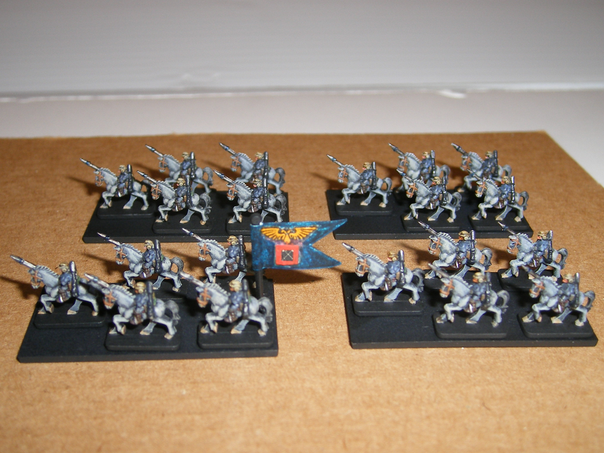 My reason for registering was to get some feedback on the idea of having imperial guard Rough Rider units modelled as acting like dragoons; mounted infantry who dismount to fight and then use horses to move around quickly.