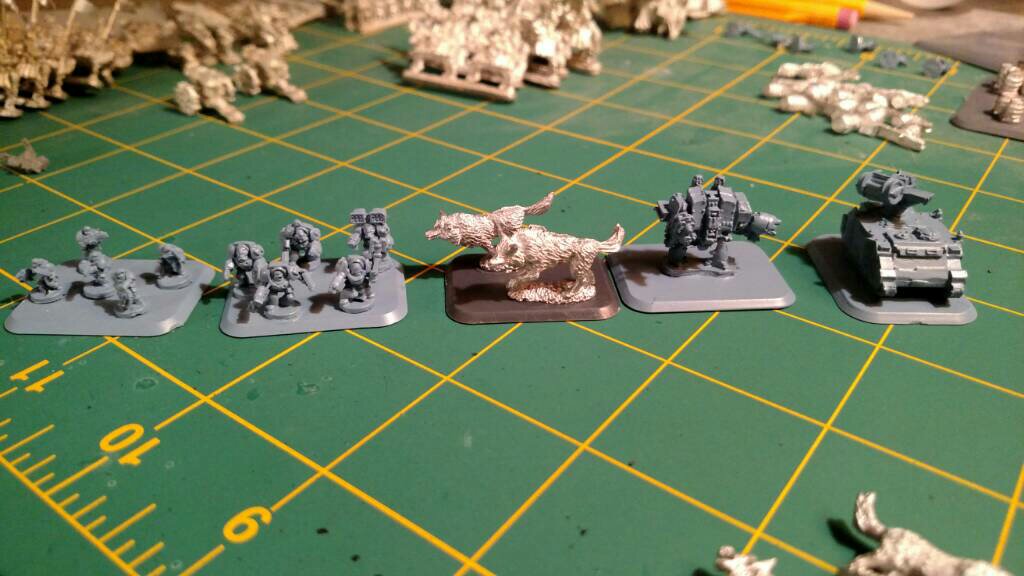 I ended up using Cobblestone Casting's wolves instead. They're 10mm so much bigger, but they're beautiful sculpts. General consensus was that they were more Thunderwolves than Fenrisian in size, but I thought these had more of a presence and looked like could actually attack something in 40k: