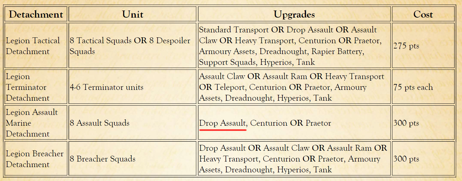Hi Guys! I'm back to you for a question about planetfall with the 30k legion. The drop pod rule is applied when the detachment chooses the Drop Assault upgrade, and I imagine the deathwind pod rule is applied too as usual.
