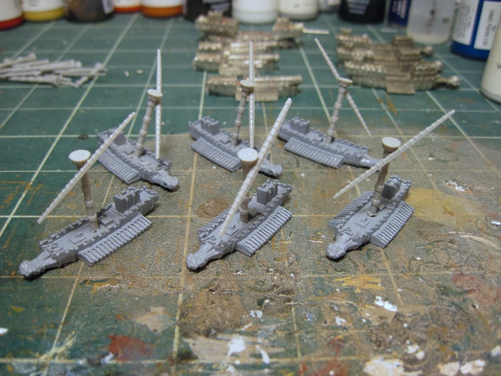 I'm also been working on an Empire fleet for Man O' War. I've built most of the ships at this point, all that's left are some Iron Fists (which I plan to convert as the lack of oars on the model bugs me) and the masts.