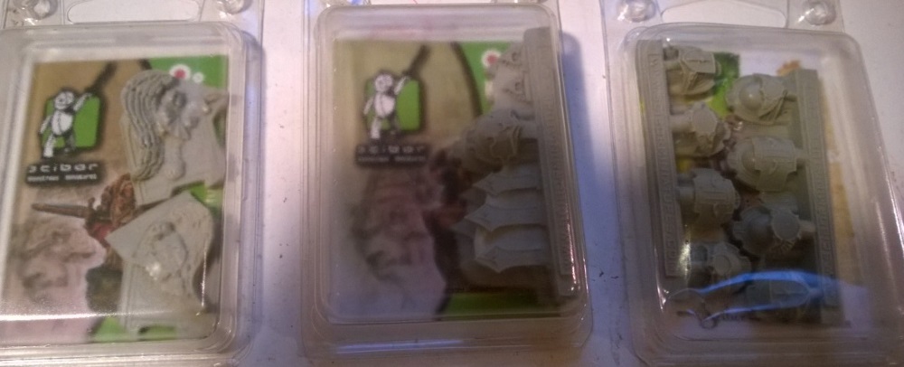 Scibor Conversion parts. Suitable for 40k figures / tanks or in kitbashes in need of inquisitorial and gothic flair. Work great as ship or building parts. Resin.