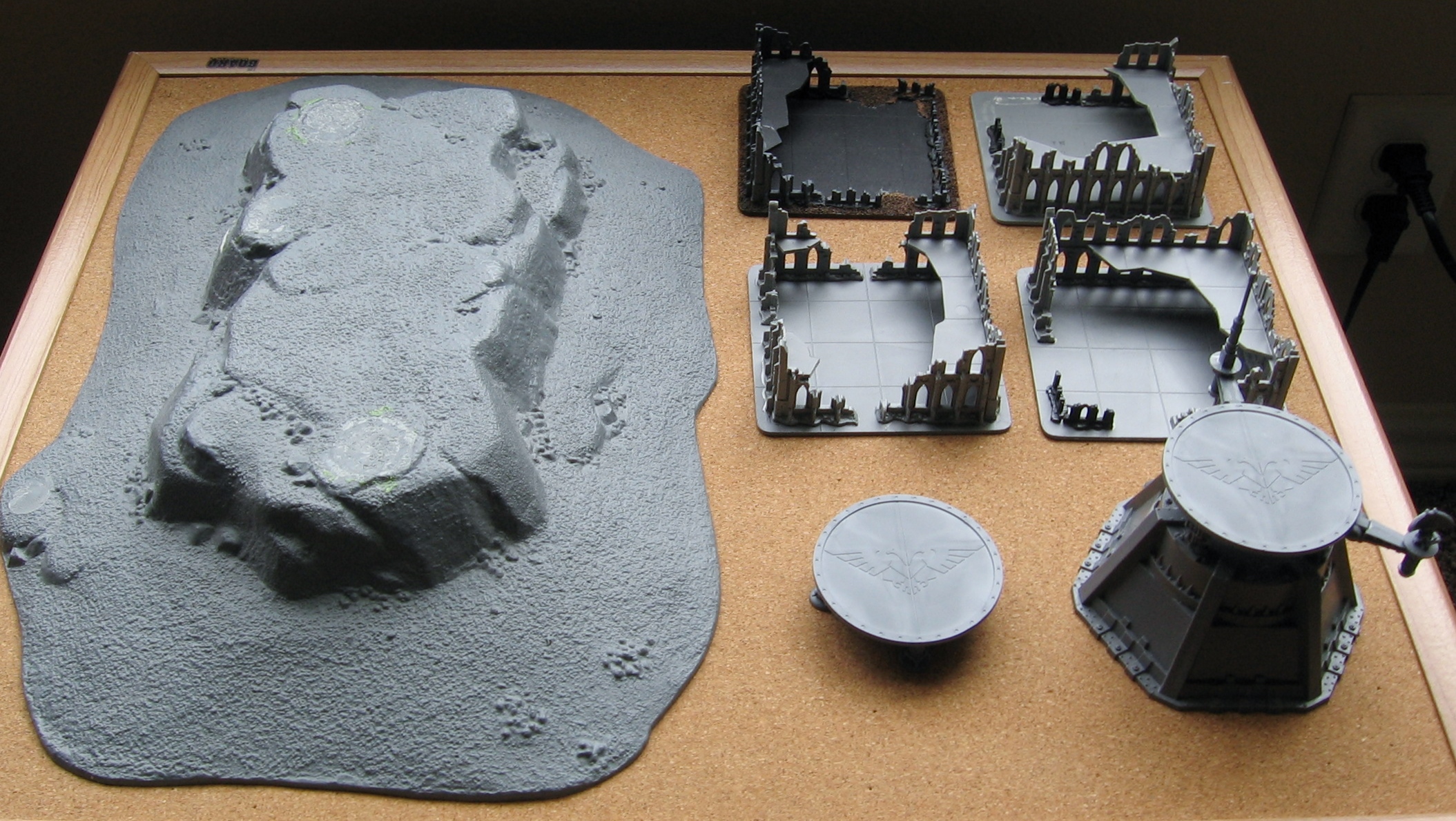 Scenery: Hill, 4 ruin bases, 2 landing pads. $15