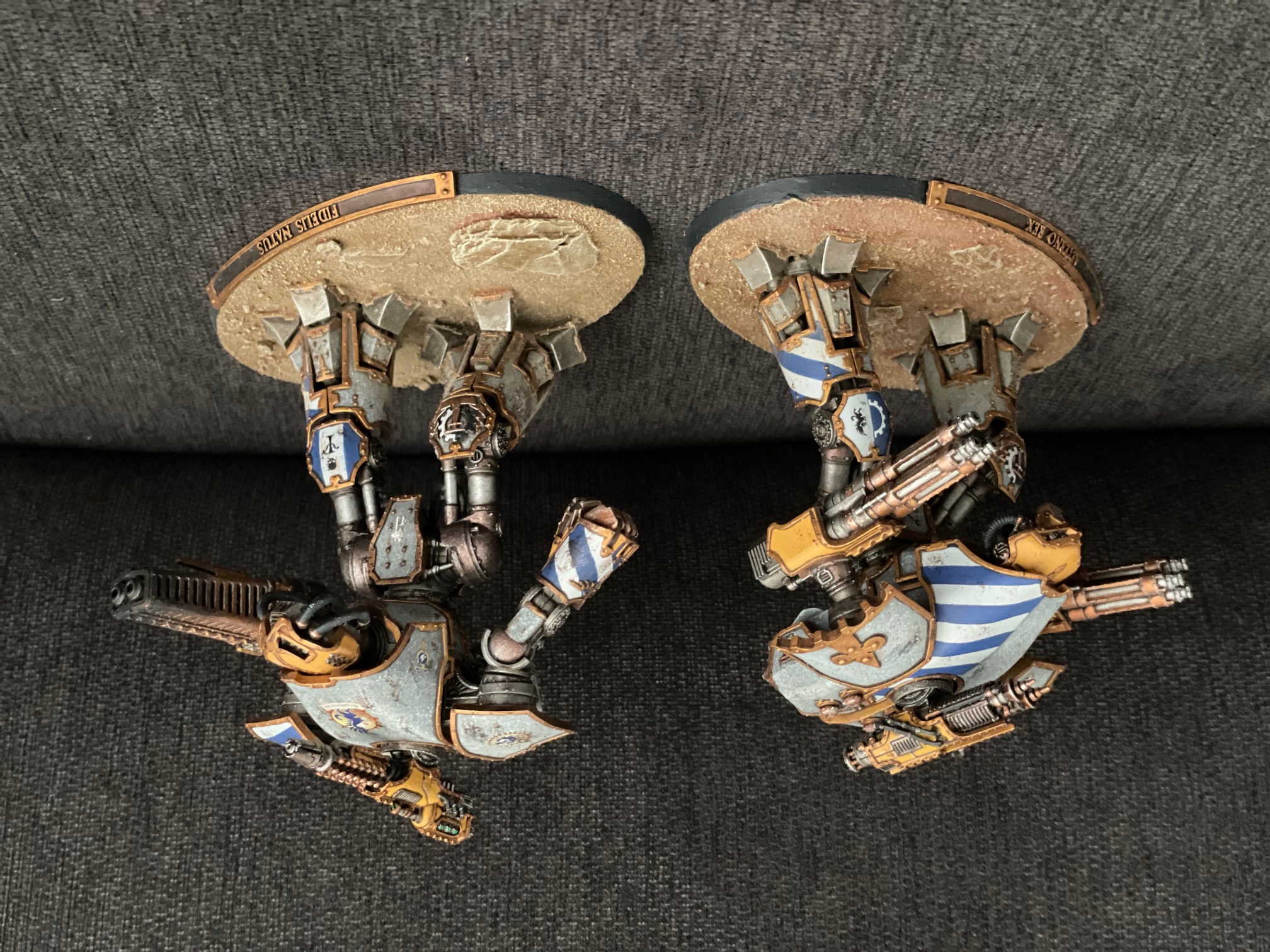 And here's the Questoris knights, pre-decals, sporting their new dual battle cannon arms: