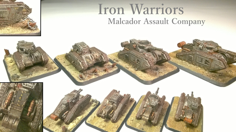 As the Imperials advanced towards the inner hive, increasingly cunning ambushes were encountered by the Guard forces. Long since relegated to reserve and second line defense forces, the Malcador Heavy tanks of the Iron Warriors were frequently used as the lynch pin of area defenses. Despite being considered to have an under powered engine for a tank of that size, the thick slab adamantium plates coupled with the claustrophobic conditions of Urban warfare made them almost impenetrable except to the largest tank killing weapons. This Malcador defnder tank detailed below was hit numerous timed with perpetrator rounds, only jamming the starboard track such was the survivalbility of this venerable design.Attachment: