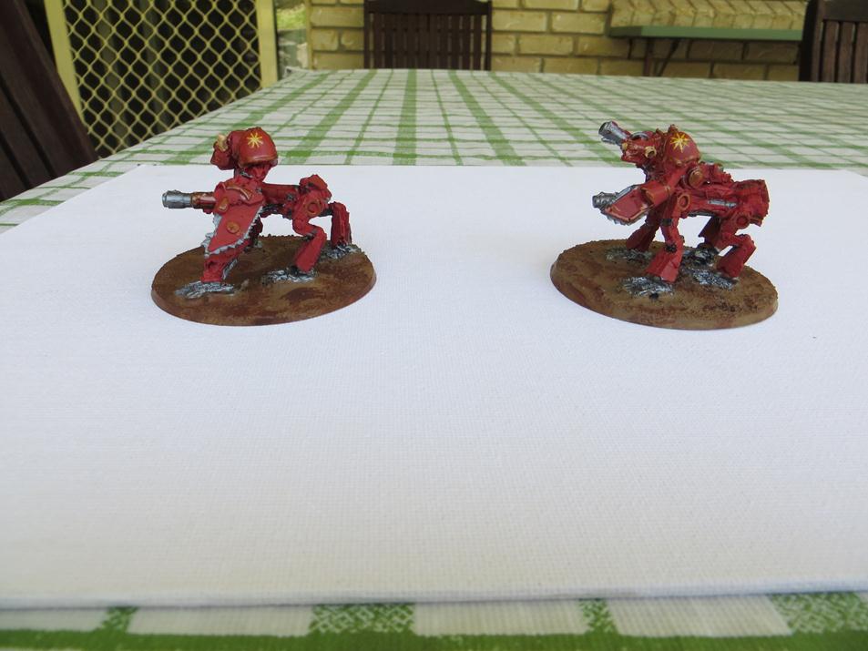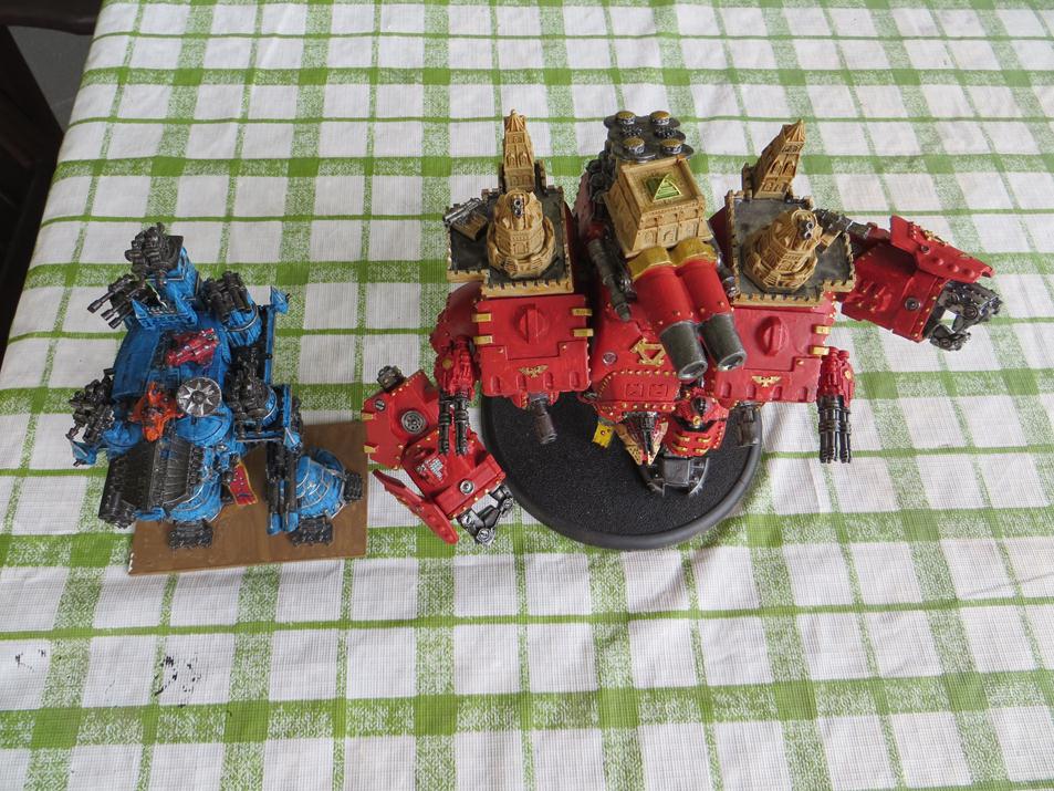 Finished -Two Imperial Hunters warlord titans. One with standard weapons configuration and the other with a different weapons mix.