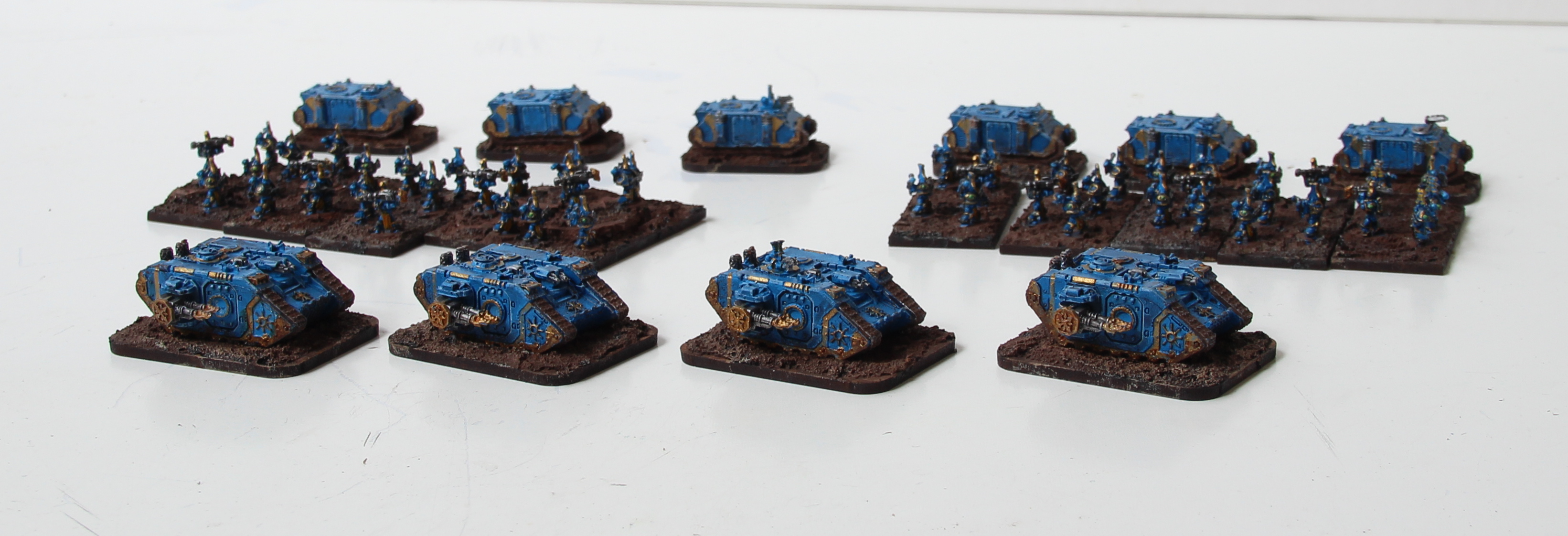 I started a new project, since the army is now almost complete. First WIP shot of the Rhinos and Land Raiders