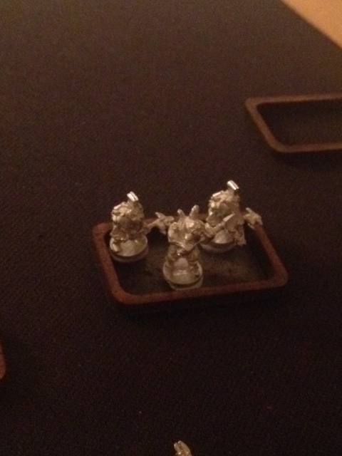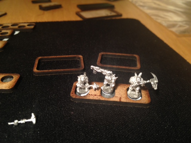 This shows the three potential bases for my big mutants. Either a standard sized infantry base, a heavy weapons sized base, or a small artillery base. The mutants weapons seem to hang over the side of the infantry base, and I think they will make the base fall over as they are a little top heavy. I'm thinking of using the larger hollow base on the back left of the first photo. Would this be a ridiculous size?