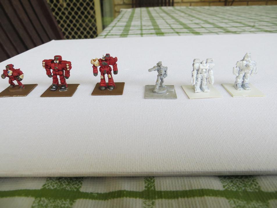 maddoctor - the 2 poses on the left are DSM139 AT-71 Hound Dog infantry walkers next to a GW conqueror right side is DSM-140 AT-71B Hound Dog support walker (heavy weapons). there is a second pose of DSM140 which has the robot holding a large weapon over one shoulder - just cant find one to photo at the moment. Nice bots worth a look. dogtrooper - i have them spread across my epic / 6mm collection so they are not all together. also they are mostly unpainted and range from human forces style robots to the more alien one released by Monday Knight.