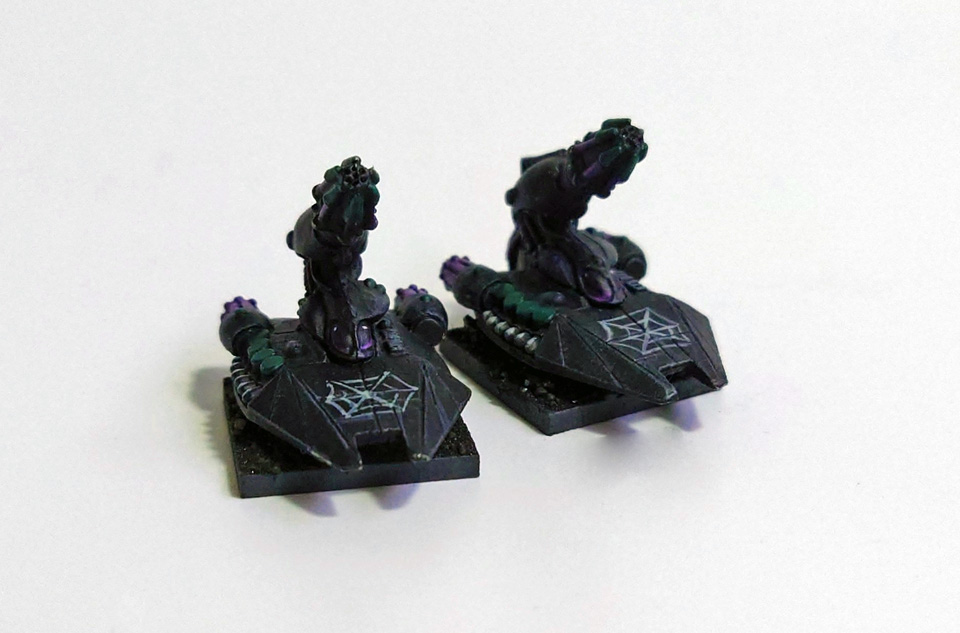 A few more updates, firstly some Eldar Warp Hunters. These are the classic minis and again mounted on a thin piece of wire, to give the impression of them slowly bobbing along through the air.
