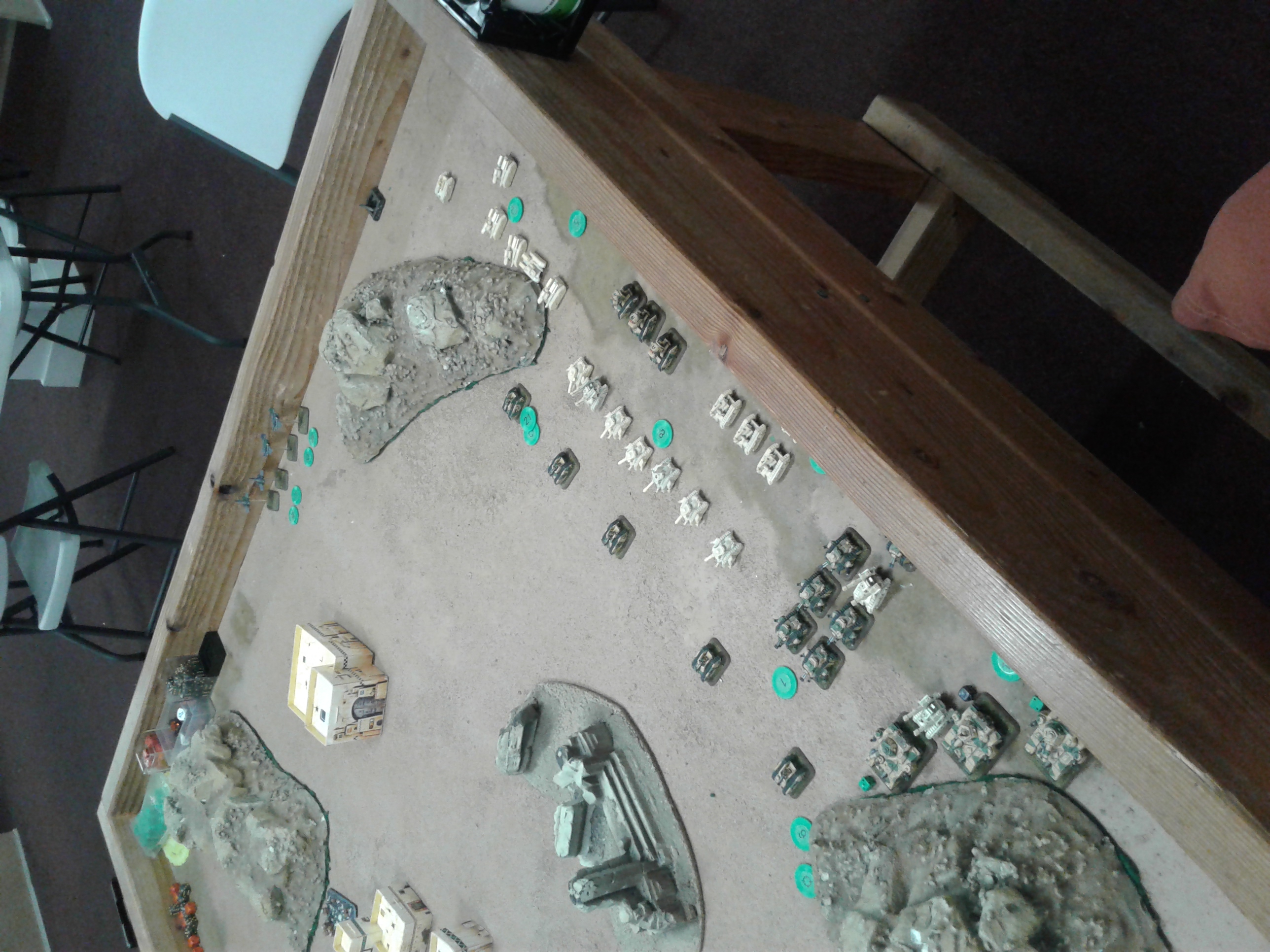 The Hellhounds won an assault on the Paladins and raced back to deny DS Blitz late in the game. The Griffons mostly sat on a T&H after a turn 1 march and took on 1-2 Knights over the course of the game. The Russ platoons held the line well enough. MVP goes to the Exterminators who scored 6 6+ hits on 10 dice.