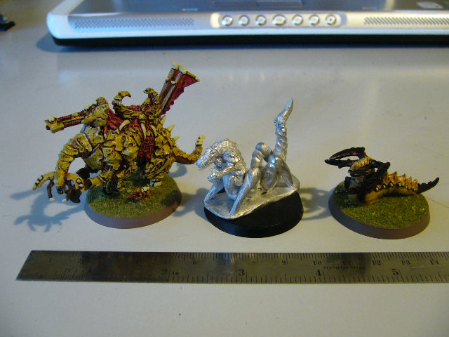 Here's a picture of the newish Skyth Kraon Beast with a GW Dominatrix and Trygon. Bit bigger than I thought it was - pleasingly though as I bought a couple to use as Hierodules to guard the Dominatrix. Matches style of these two GW Tyranids very well with similar armour plates and narrow head. Will have to trim down base a bit to fit on 40mm base. Will post some pics when painted, maybe as part of this years Epicomp.