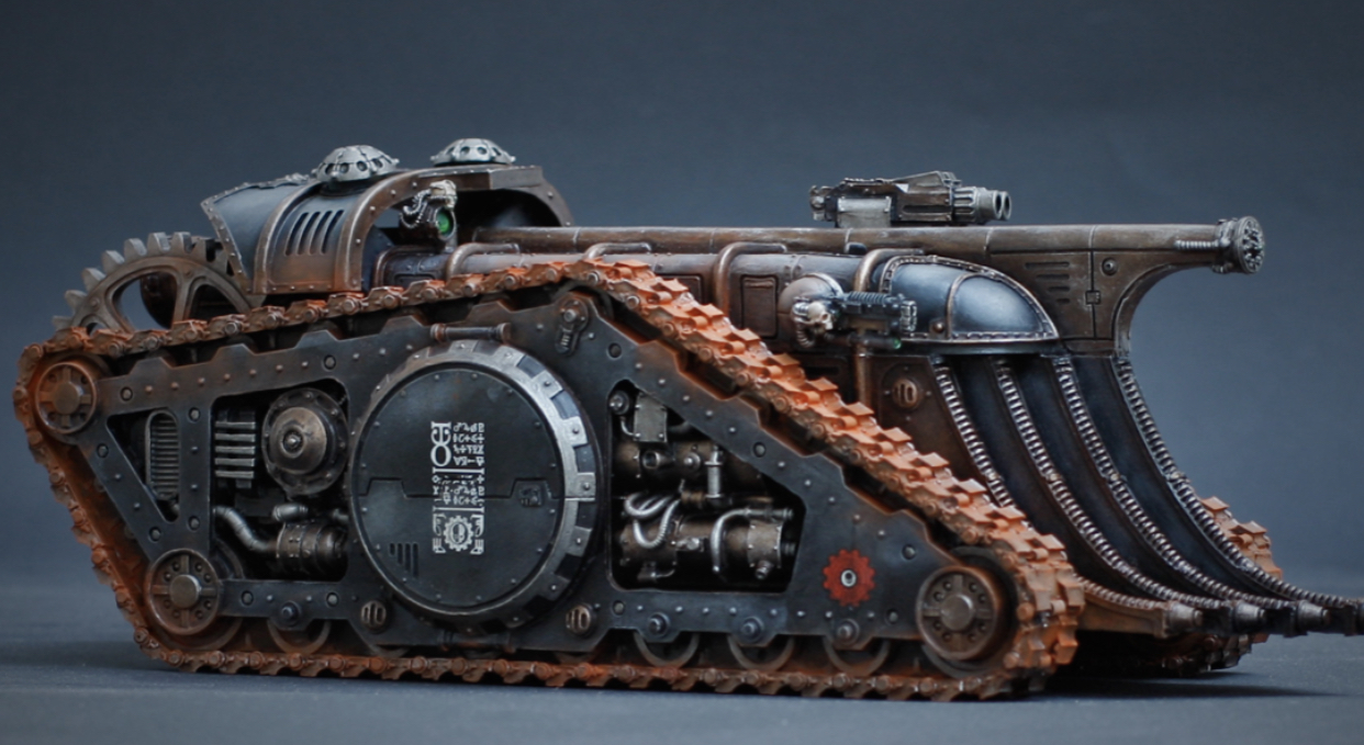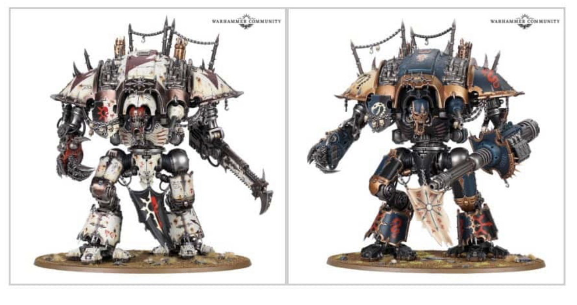 So, the sub title of the list “the forgotten forgeworlds” sets this list as a force located on an old forge world somewhere, in a dark corner of space ,swallowed by the warp back in the 30k days. We see old rusted and tainted Krios and Triaros patterns on here, along with Warp infested Dune crawlers and corrupted Dust Stalkers. These ancient old Forgeworlds have a few Fallen Knight houses sworn to them as well as lone Dreadblades , knights gone mad , corrupted by Chaos and no longer belonging to any house. Instead they fight for the Tech-Hereteks in return for weapons and maintenance. Also these Hell-Forges spit out foul Deamon engines , such as Defilers , Forgefiends and Desecrator Walkers.