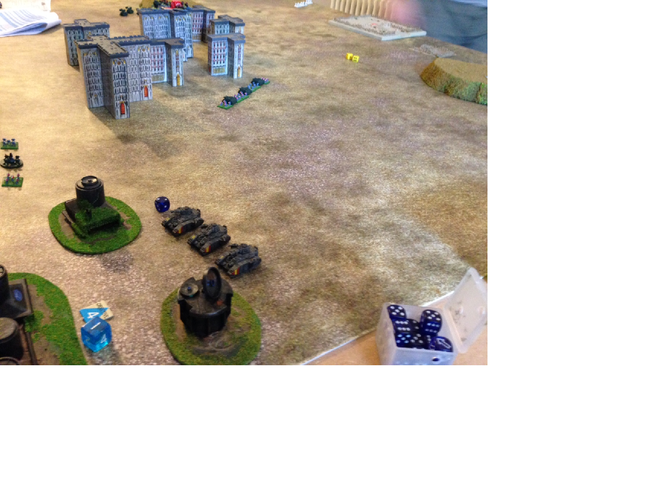 IG - The Baneblades advance on the SM SC. They destroy several units and break the SC tacts which flee meaning the Baneblades take the SM blitz.