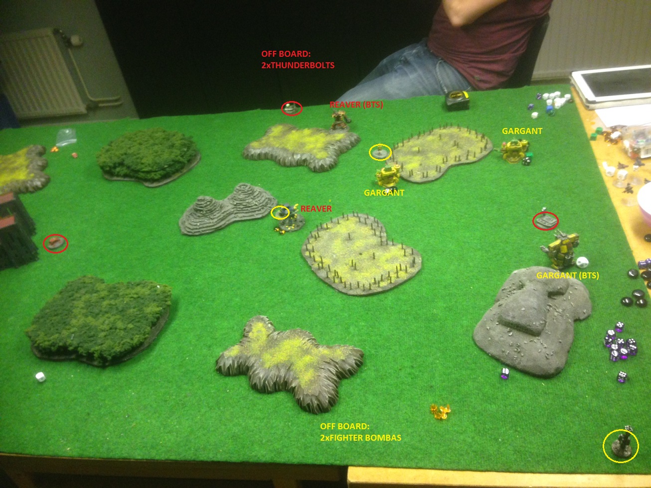 The deployment was that i deployed the gargants on 1 side while nick spread out a little more.