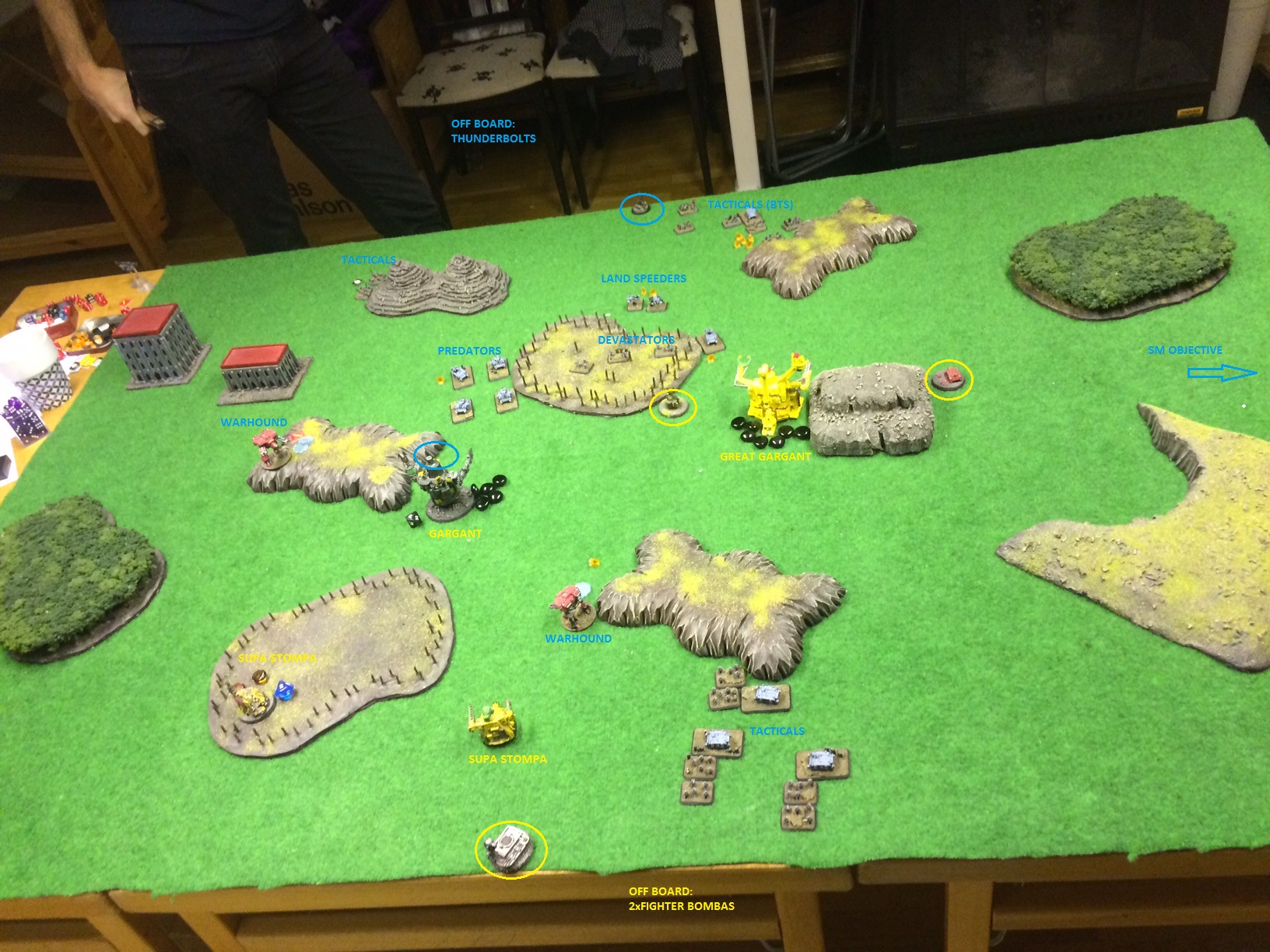 The Marines did well but the assault to the Supa-Stompa i think that it was a bit too much suicidal even if they managed to destroy the Supa-Stompa, maybe would be better to assault the Gargant, using it to block support fire from the nearby Supa-Stompa, or the Blitz Supa-Stompa, and get more crossfire opportunities for the others.