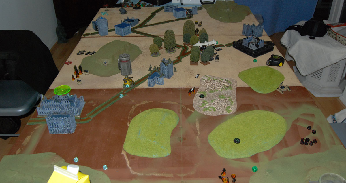 I almost managed to push the game to a turn 4 by engaging the Warhound with my Commandos in a firefight, but round 1 was a draw and round 2 was won by the Warhound by 1 point.