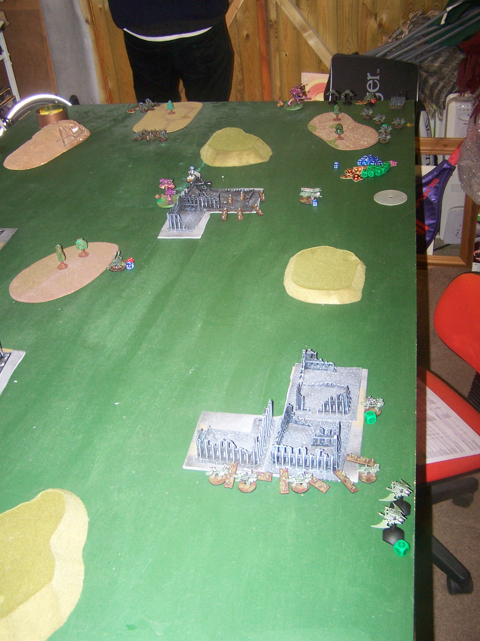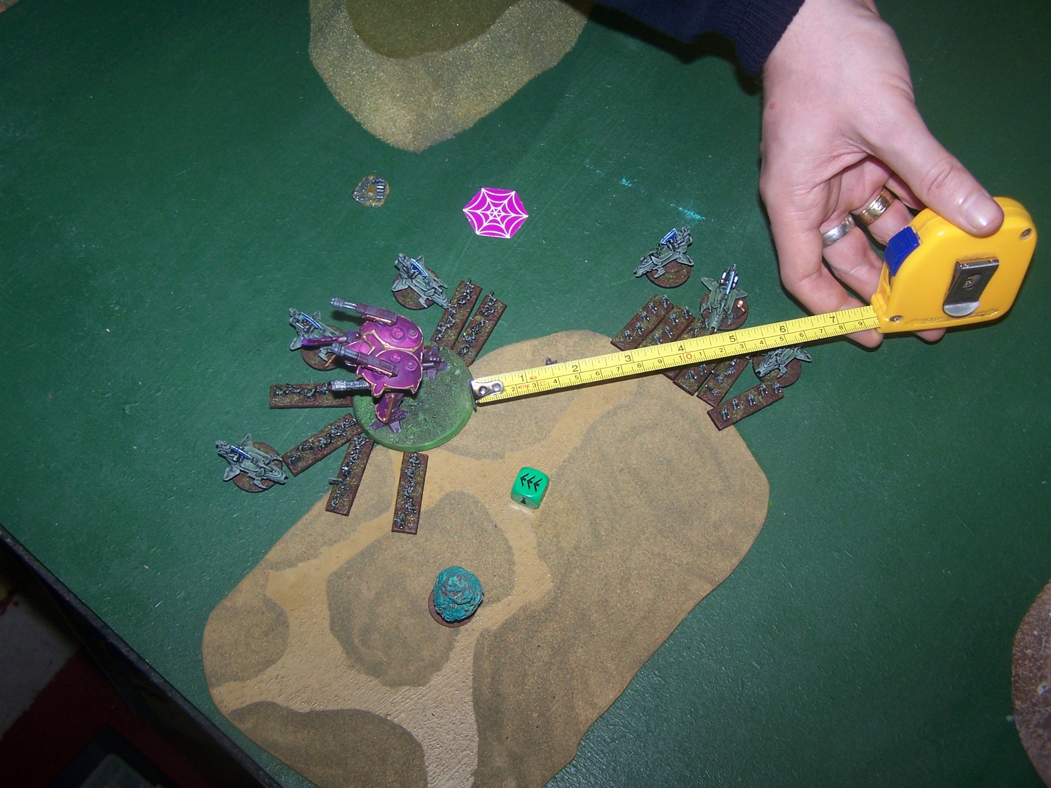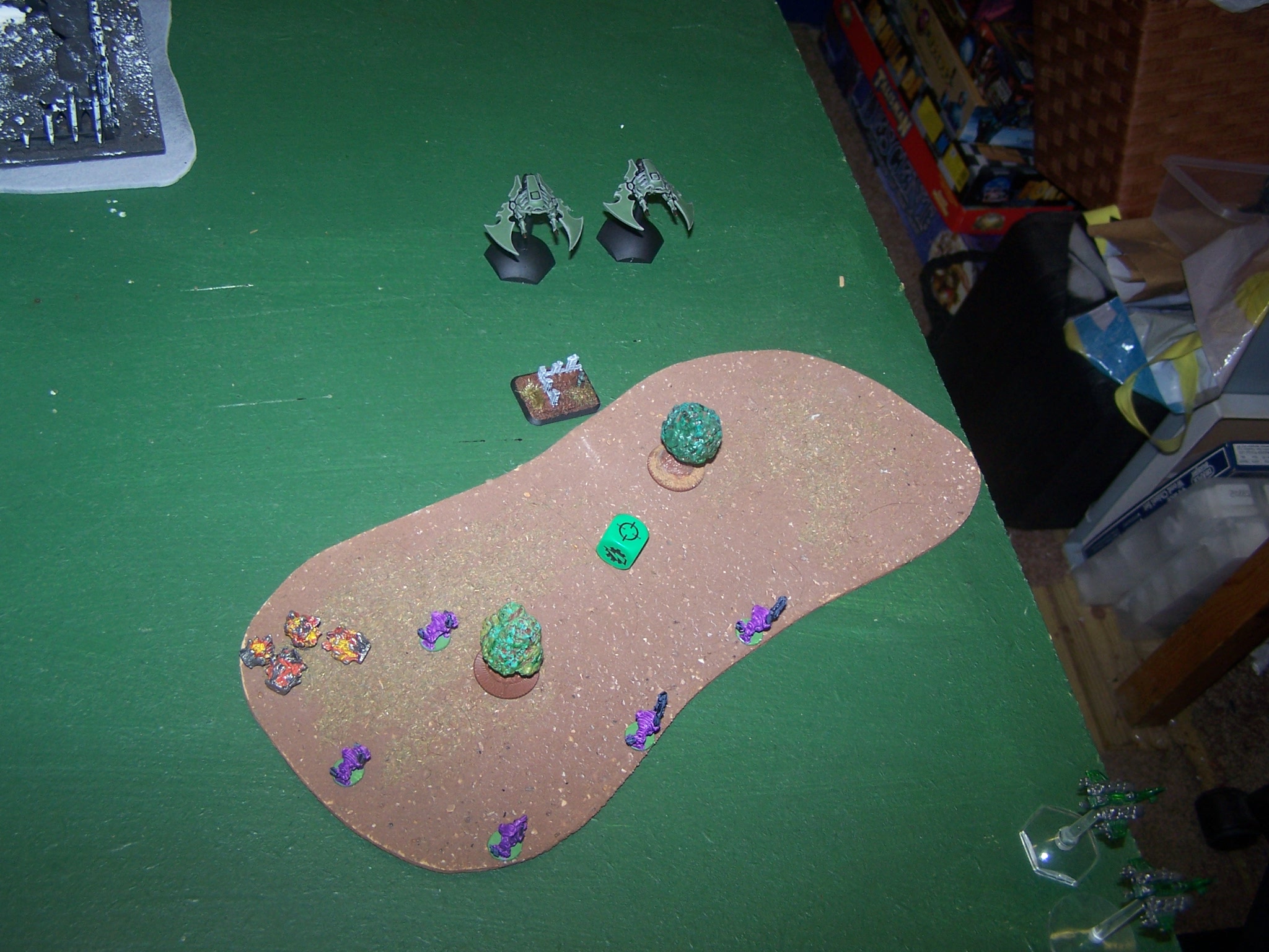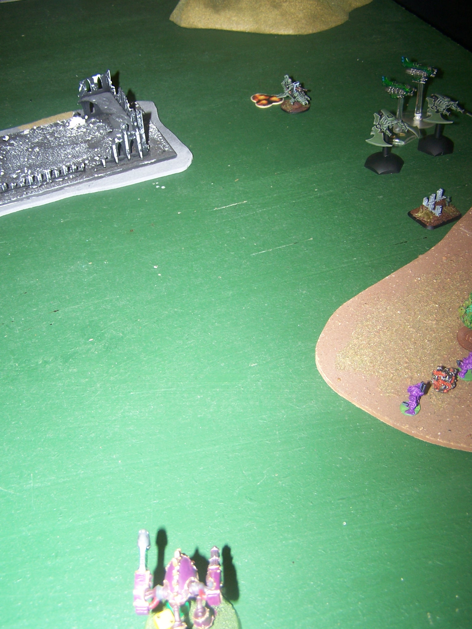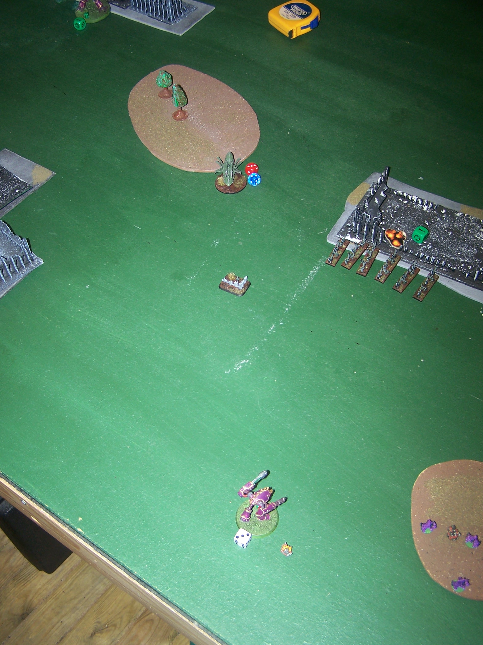 Objectives were set up with the DE Blitz on their right flank and TnH were deep in the AMTL half on the DE right. AMTL placed their Blitz in the centre of their deployment zone with the TnH obectives just over the mid-point to the AMTL left flank closer to the DE Blitz. The central most TnH objective was changed to the Webway portal.