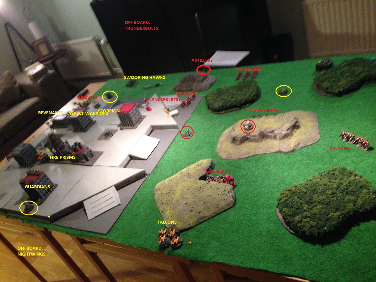 So, took the knights out once again. Thjis time it was against my arch nemesis Uvenlord and his Biel-Tan Eldar.