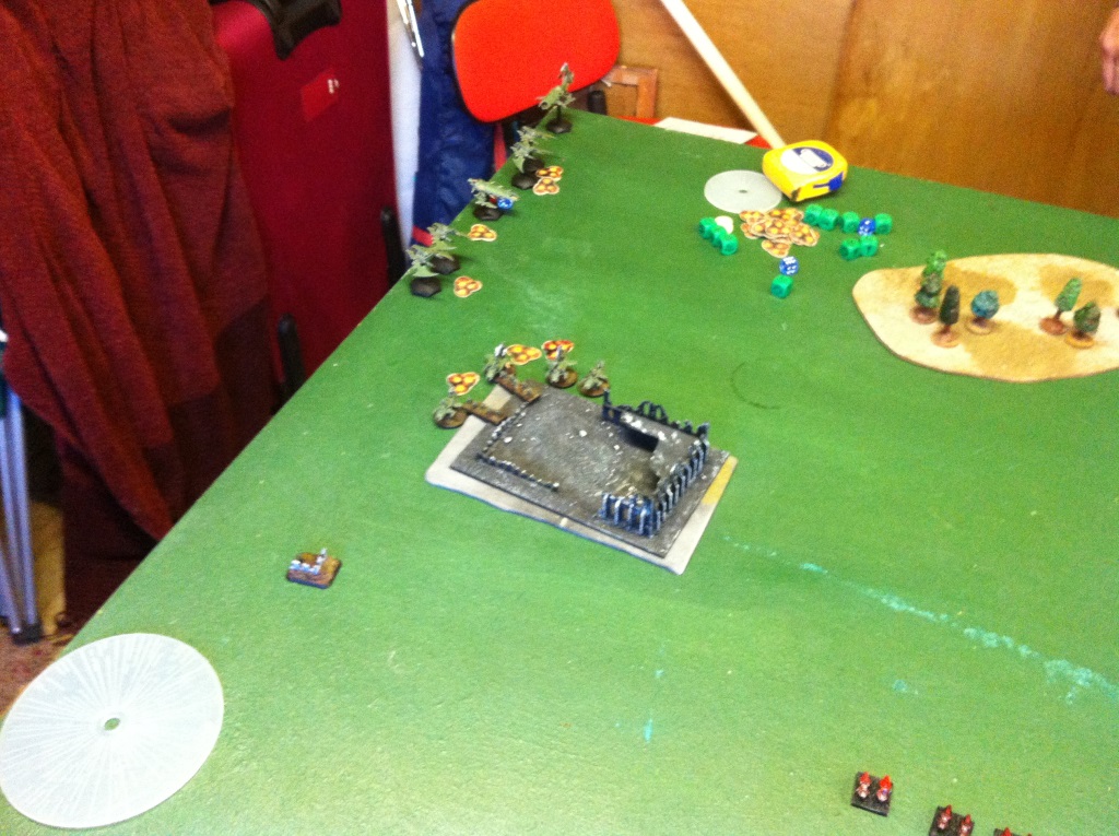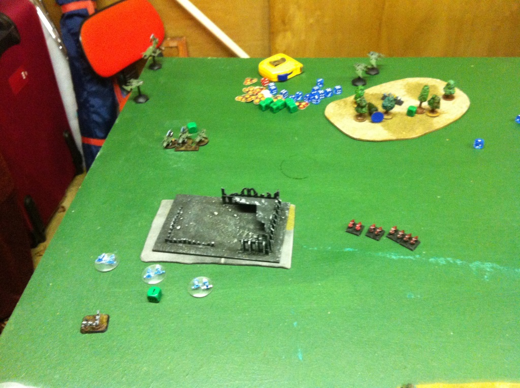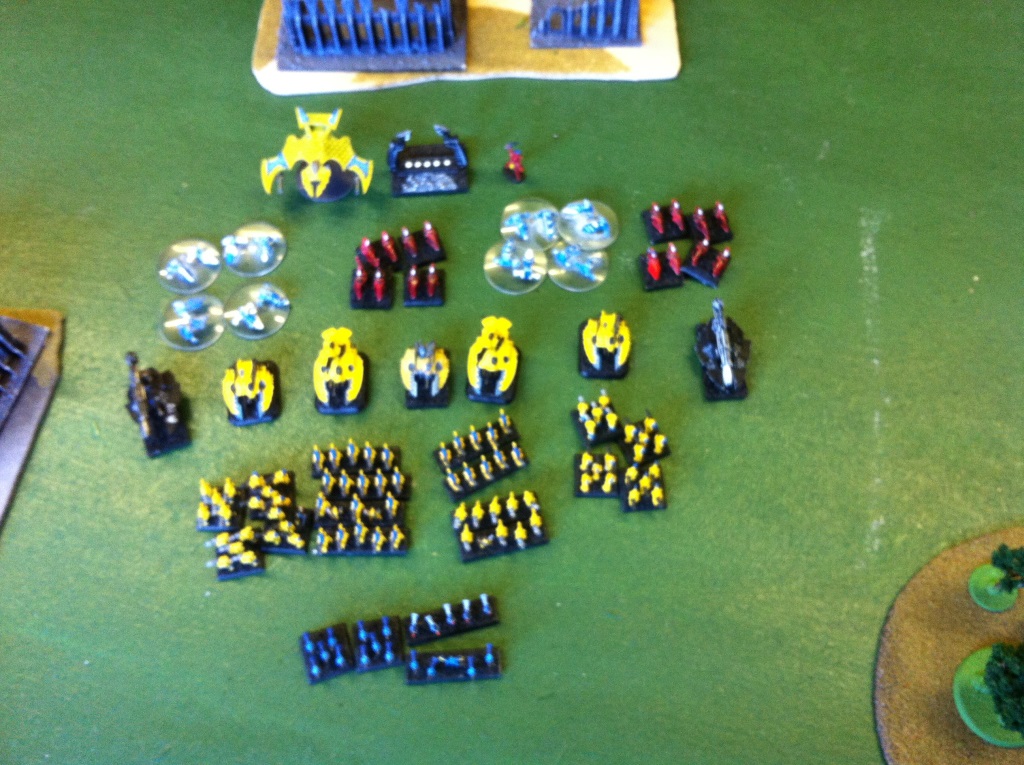 1. Iy – SS(4) engage Mandrakes, clipping 2. They lose one and kill one. Mandrakes win roll off and wipe out SS(4). Mandrakes move forward blocking possible Avatar engagement of Ravagers. (Oops that went wrong)