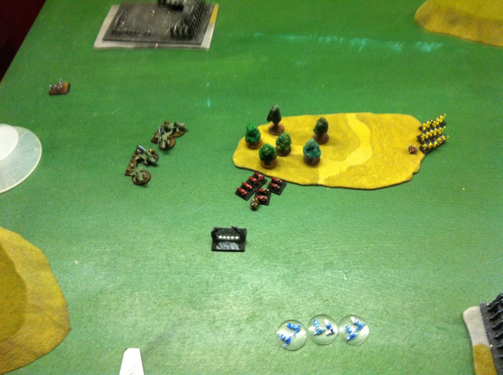 Yes, with the terrain that we play there were effectively two places to hid or set up in the open. I took a risk and got hit.