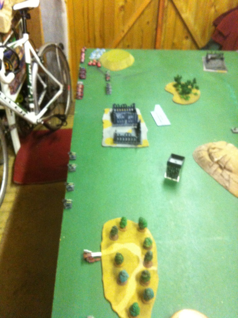 SH – Hornets (3) double with the SC re-roll and fire on the Armoured Company, 3 hits, Predator fails and the formation breaks back to deployment zone.