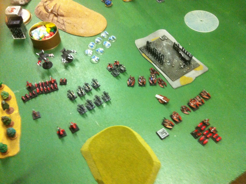 TS – SC Retinue advances to fire on the Falcons. Defiler fails DTT, dies and no other units can fire.