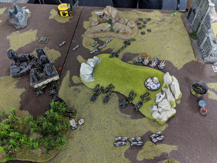 It was an interesting game, the Chaos lack of Ground AA was a bit of a pain in this matchup, and i struggled to keep the superior DE Air off my back, the slavebringers being particularly nasty given their shields give them cover. Daemons definitely felt much more toned down, and weren't carrying assaults on their own like they normally would, although the DE air assaults did leave units a bit more vulnerable than they would normally be due to having no chance to summon daemons before being assaulted. Fighters at 30cm range was handy given it allowed me to sit in obliterator flak bubbles and avoid the DE fighters having carte blanche to come in and attack.