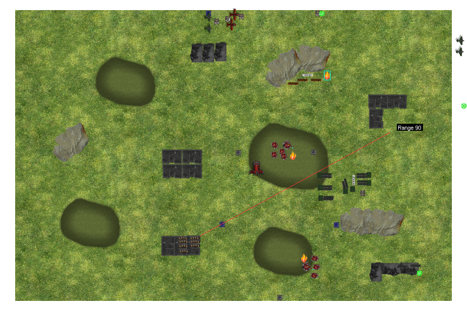 O1.1: fighter-bombas ground attacks deathstrikes for 1BM after 2 planes get shot down by hydra AA. O1.2: Fighter-bombas retains and ground attacks deathstrikes again killing 1 and breaks the formation. Another 2 planes are shot down by Hydra AA (damn!) SL1.1: Manticores sustains on blitz brigade killing 2 flak wagons and 2 gun wagons breaking the formation. SL1.2: Manticore retain and sustains on now broken blitz brigade wiping it out (oh great start for the orks!) O1.3: Stompa Mob doubles forward. SL1.3: Sentinels gos on OW. O1.4: Stompa Mob doubles forward. SL1.4: Sentinels marches into ruins and ZoC:s stompa mob. O1.5: BTS-Stompa mob doubles forward and fires on sentinels in ruins killing 2 and breaks the formation. SL1.5: Inf Co marches into ruins on right flank. O1.6: Fighter-bombas ground atatcks broken sentinels wiping them out. SL1.6: Thunderbolts intercepts fighter-bombas and kills of the last plane in the formation. O1.7: Landa stands down. SL1.7: Thunderbolts intercepts fighter-bombas and kills of the last plane in the formation. O1.8: Landa stands down. SL1.8: Warhound doubles forward and fires on Stompa Mob for 1BM. SL1.9: Mech Co doubles forward and fires on same stompa mob for 1BM. SL1.10: Warhound marches. SL1.11: Reg HQ marches.