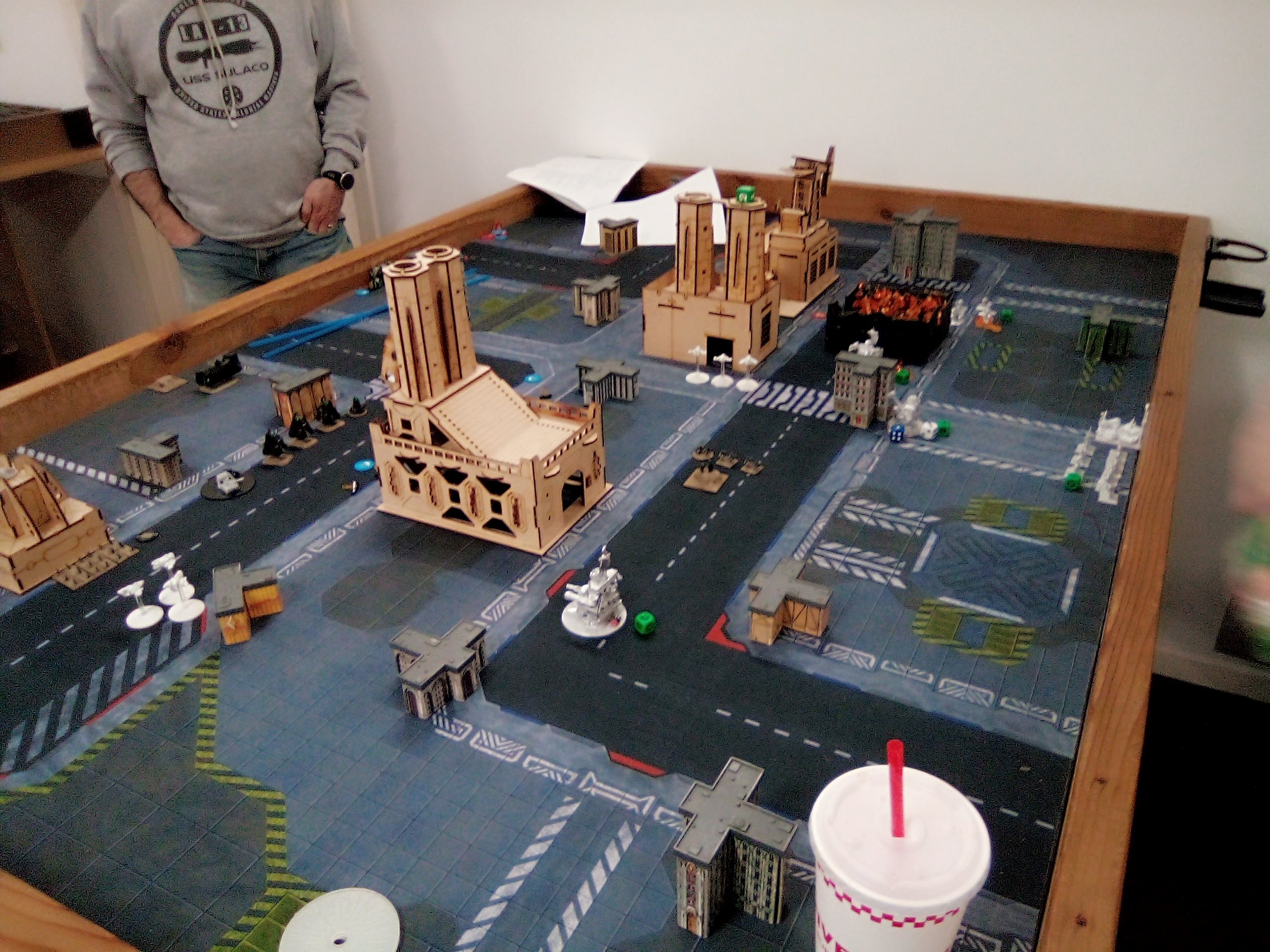 [quote="Rob:]In turn 1, the orcs moved out. Obelisks and monoliths beamed in behind buildings. Due to position of orc war engines I really couldn’t engage right away te way I wanted to. The obelisks popped up and took out an orc dreadnaught. But no units came out of portals because softer targets were too far away and too well protected by war engines.[/quote]