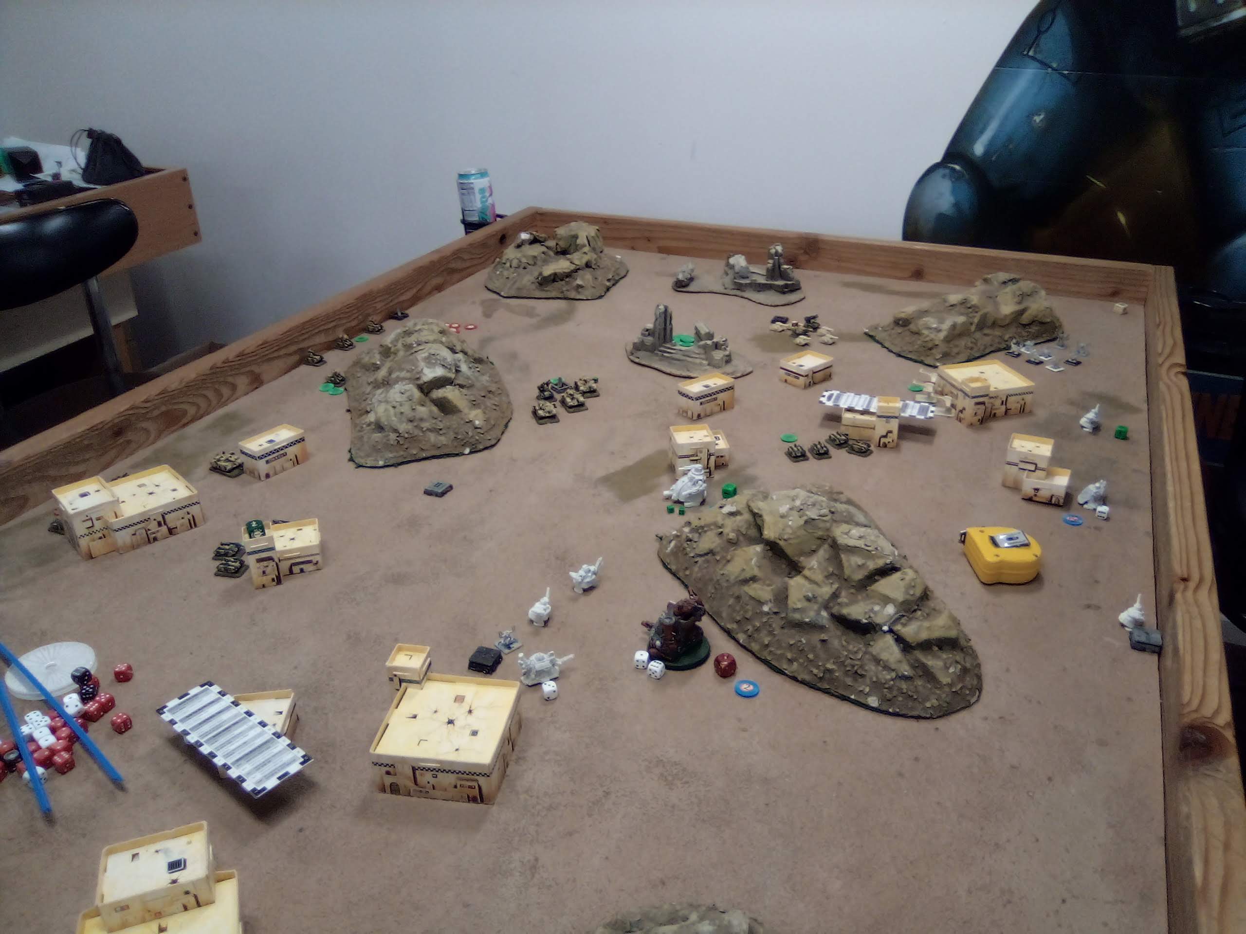 The Guard's left managed a much better time, breaking both Stompas and the Supa. The Kans took out a Vulture that doubled up and the Salamanders started sneaking towards crossfires and Blitz.