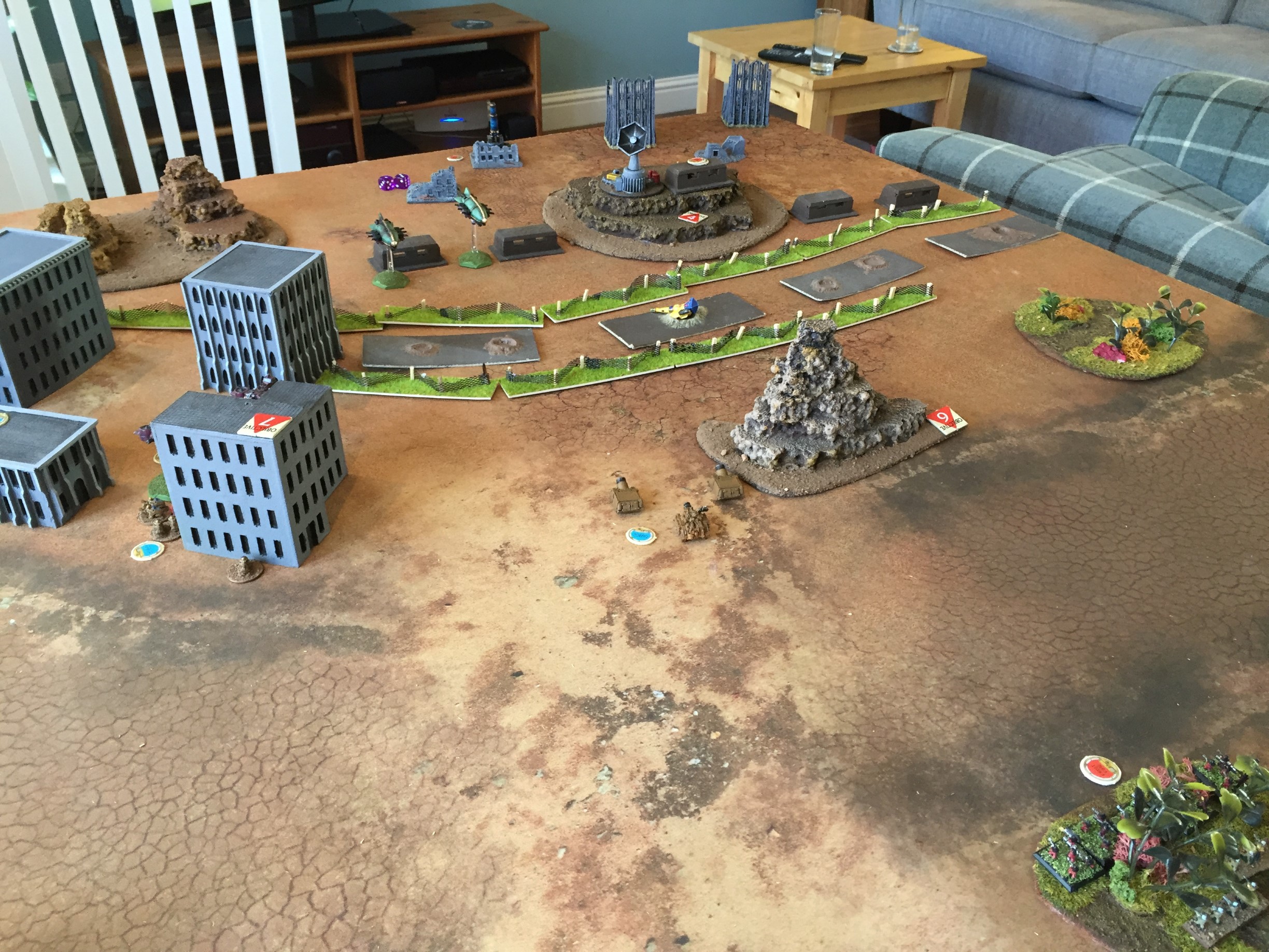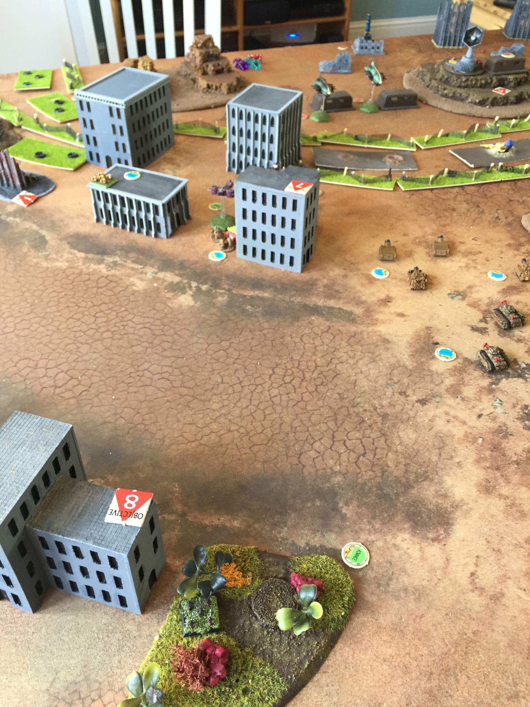 overhead a detachment of gyrocopters dart between the tall buildings and begin firing at a squad of heavy infantry making a break for higher ground, one unit is gunned down.