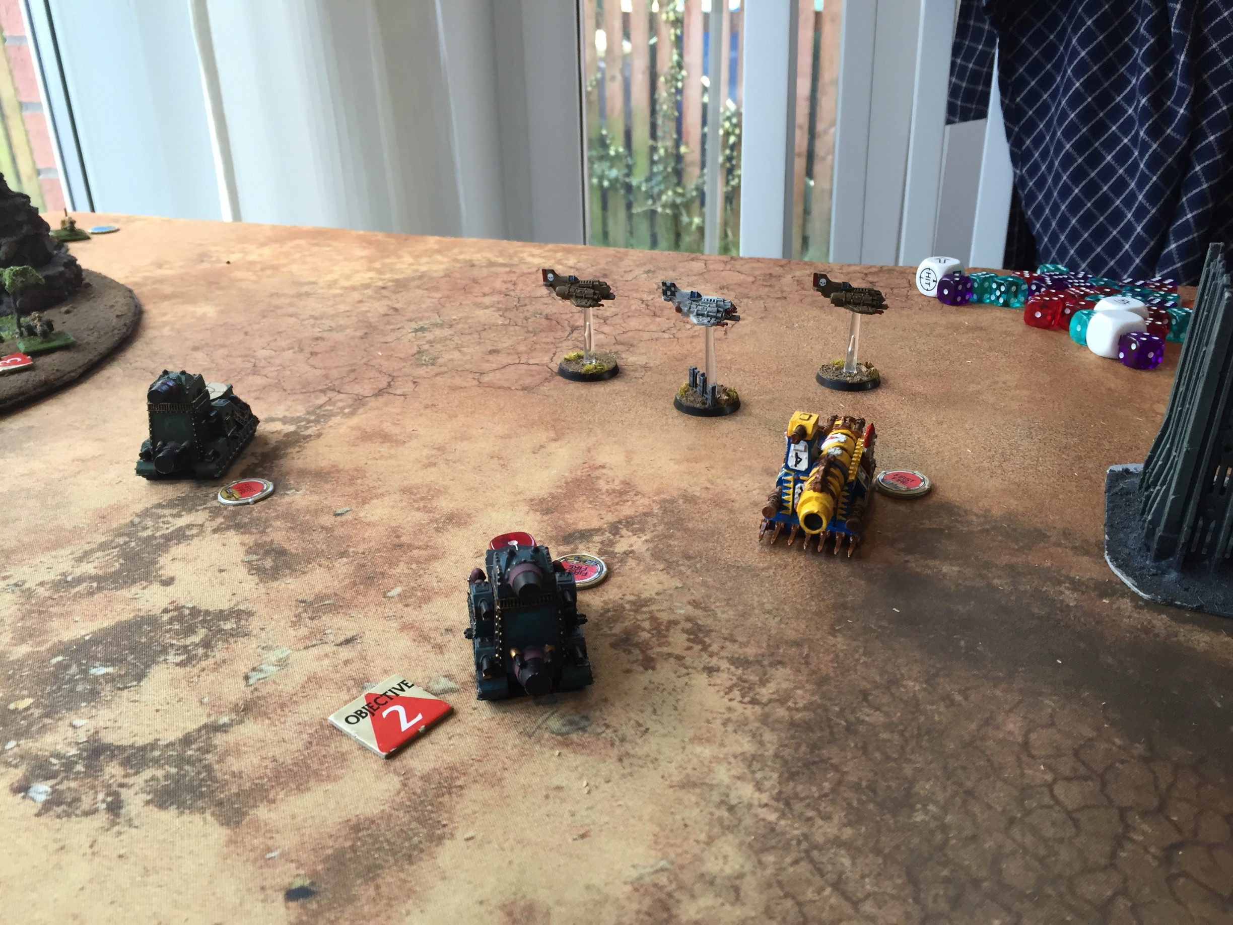 The ultimate terror for Markas' Imperial force sits defending the right hand river crossing, a DoomAnvil company fully stocked with missiles and void shields fully charged.