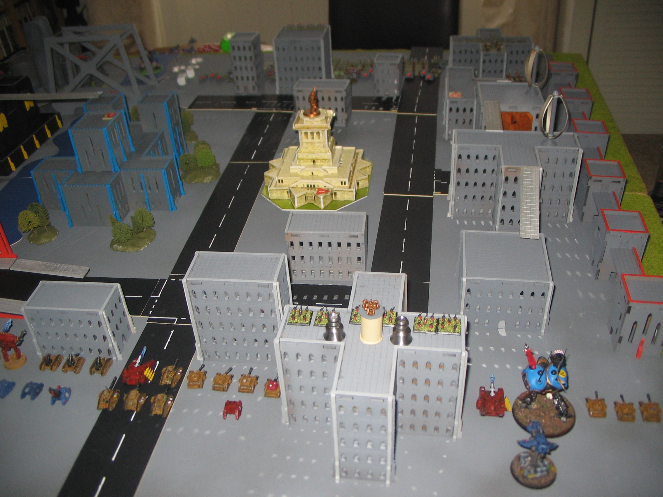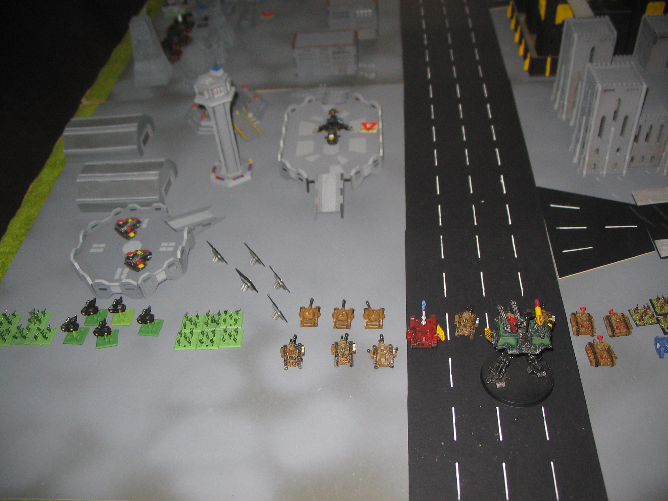 On the right hand side of the Highway Devestator Marines and Heavy Tech Guard would infiltrate buildings, take objectives and provide fire support, the hell hounds would flush out any infantry coming from the other side thinking of doing the same!
