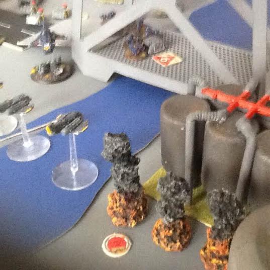 on the far left flank Tech Guard infantry and Marine landspeeders would charge forward and grab objectives from the close quarters layout of the space port and planetary defences.