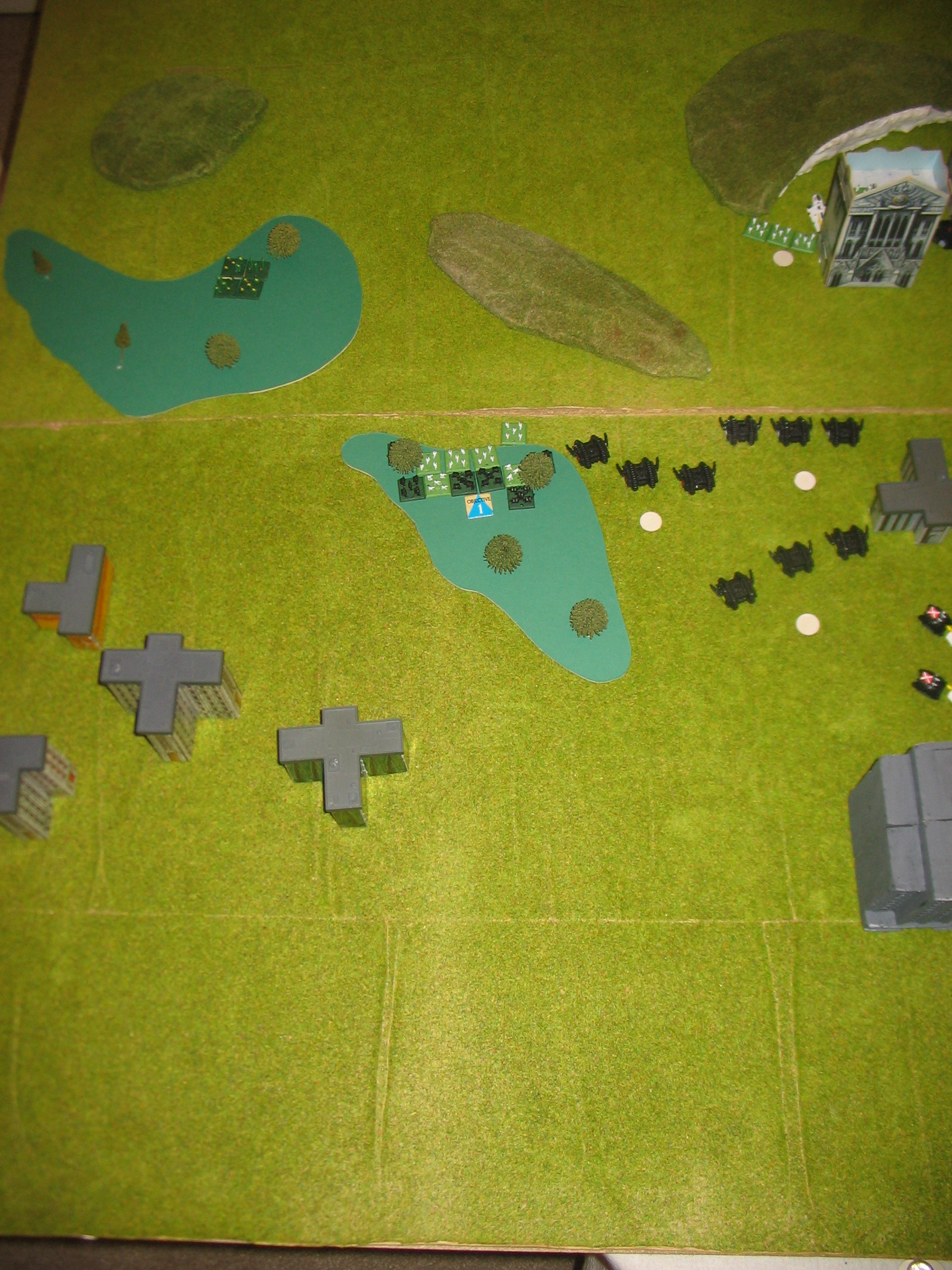 This battle was the second fought as part of my Epic War! Campaign. To find out more about the Campaign, please see this thread; viewtopic.php?f=14&t=24706 Which units were used for this battle can be found on the pre-campaign force lists in the same thread. To help, the Marine force used was under code J74, the Eldar E1. The terrain the battle was fought on was woods (F3 on Campaign Map), and with both armies on charge orders, a standard battle of epic was fought with no advantages to either side. Each army was worth 2,000 points, so again, the battle was fought with equal forces. Deployment: |