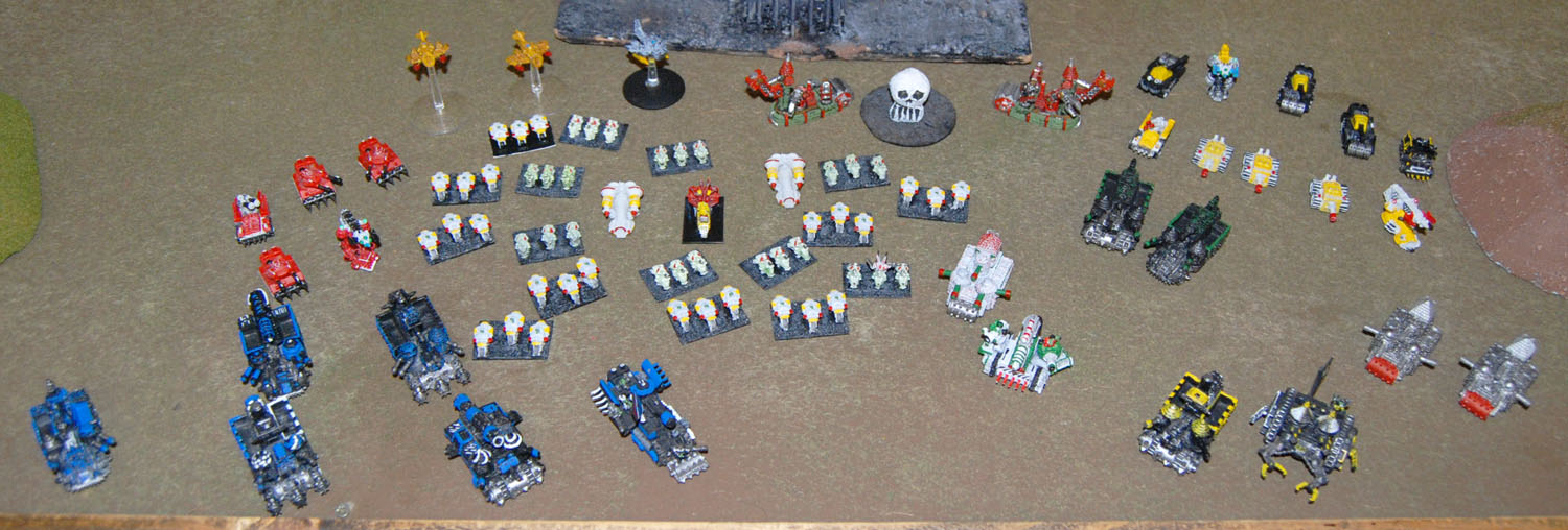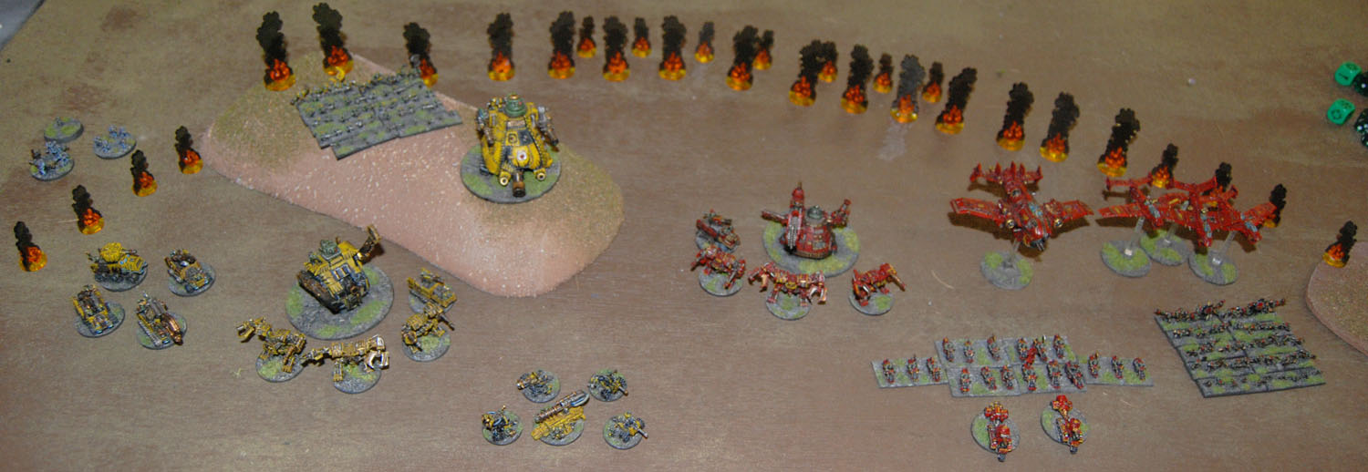 Vanaheim, my that's a lot of skimmers! This was a game that could have gone badly but I think Chris moved forward a bit too aggressively on turn one and allowed the nids to swarm in and smash formations at will in turn 2 and 3. A very bloody game that saw the nids edge it 2-0 in 3 turns.
