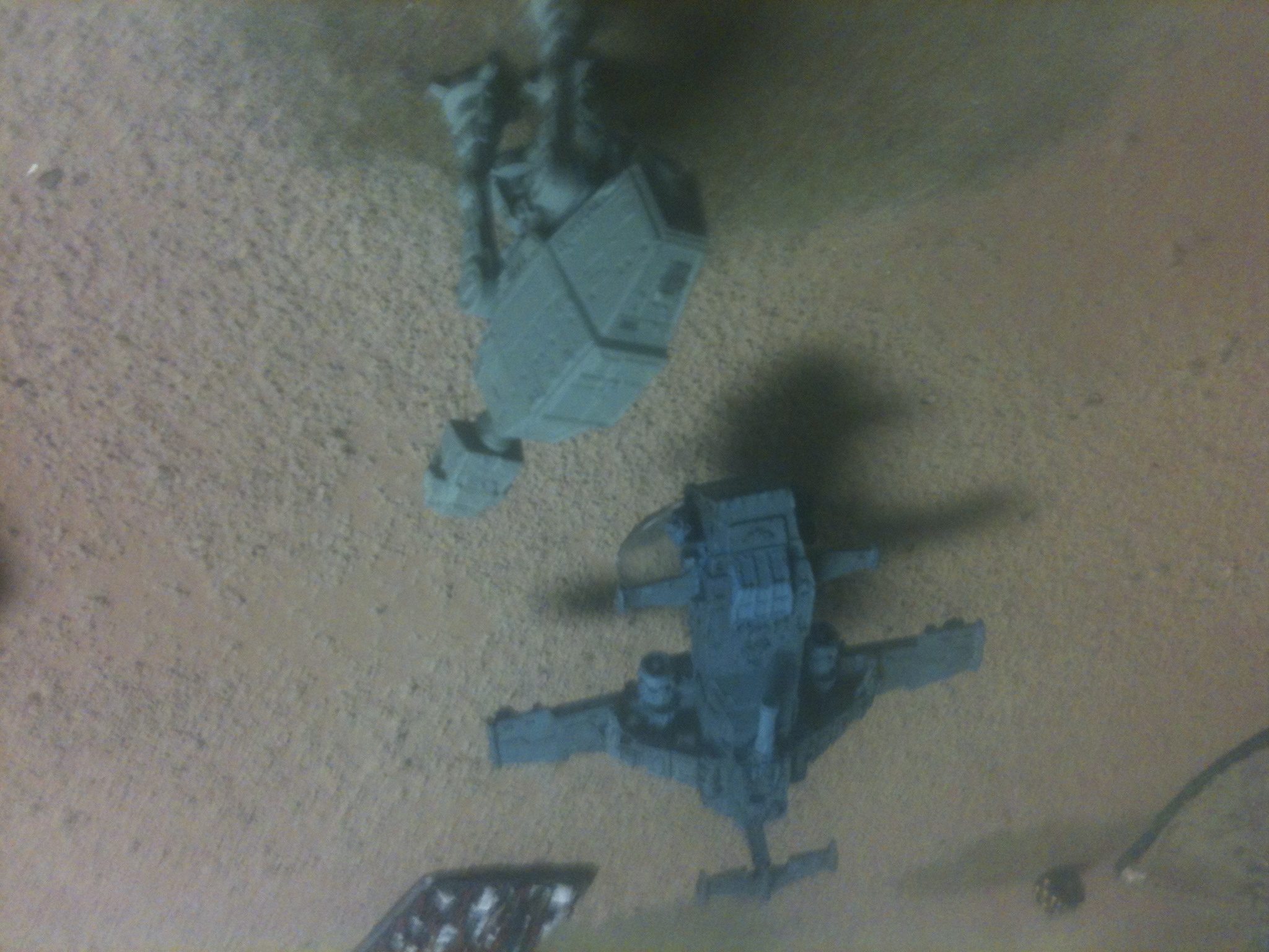 File comment: warhound bneing assaulted by a thuderhawk full of space wolves terminatros
