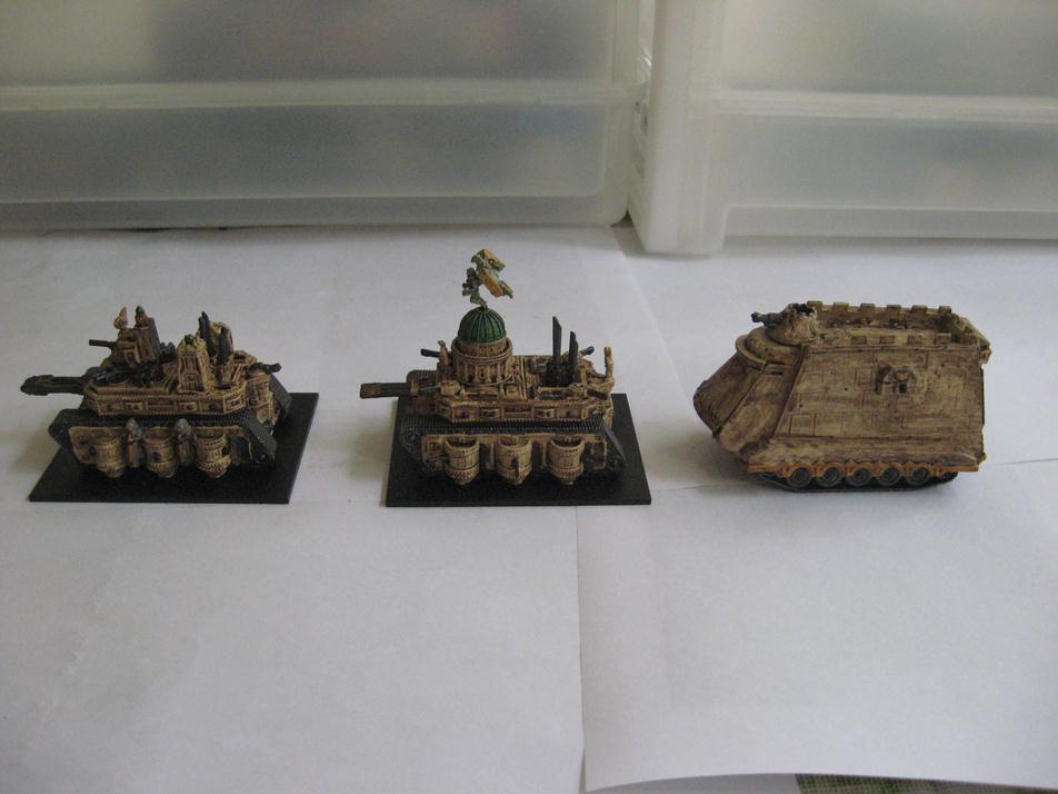 You did indeed especially in the case of the domed one with a statue on top. I love your thread. Its second use is as a sisters vehicle . The plasma is a weapon from a heavy tank i got from the blue warewolf. The statues between the sponsons are greenstuff. But i did cheat from a vehicle i got from warmaster nice. It had 2 of the statues on its front. I used blue stuff to make a mold and now i make them up out of greenstuff. I will try and post a photo but the quality wont be great as my camera is struggling with close ups. As an example the tips of the missiles on the flyer are actually red !!.