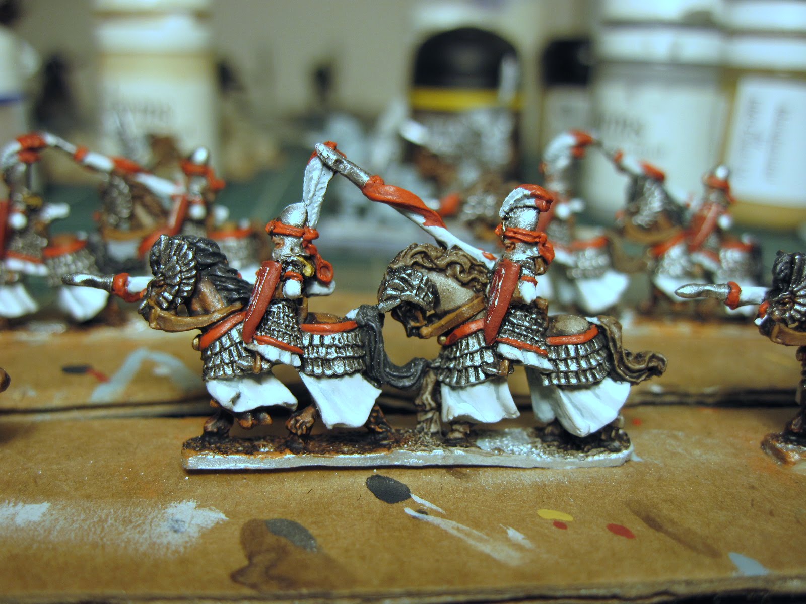 I picked up where I left off with the Reavers a month or so back. I managed to get the base coats down for the horse flesh and tack. I should be able to get a wash and highlights on them this weekend. After that I'll move on to the flesh, red and white.