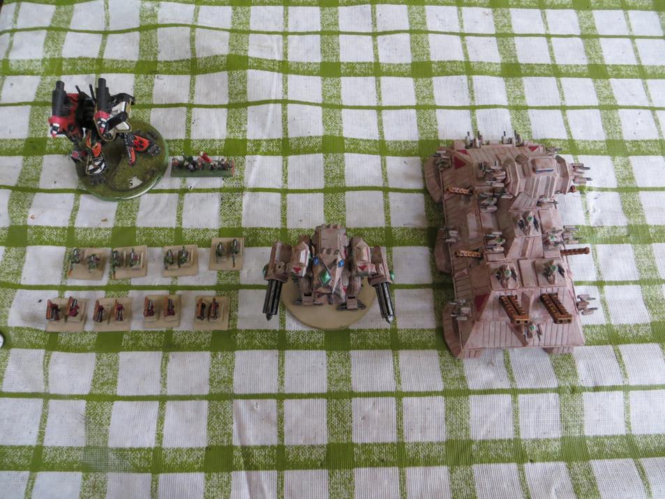 One of the centaur walkers painted. Included as part of a zoat force with a large vehicle, a heavy weapons squad and an ordinary squad. The warlord and chaos infantry are included for size comparison.